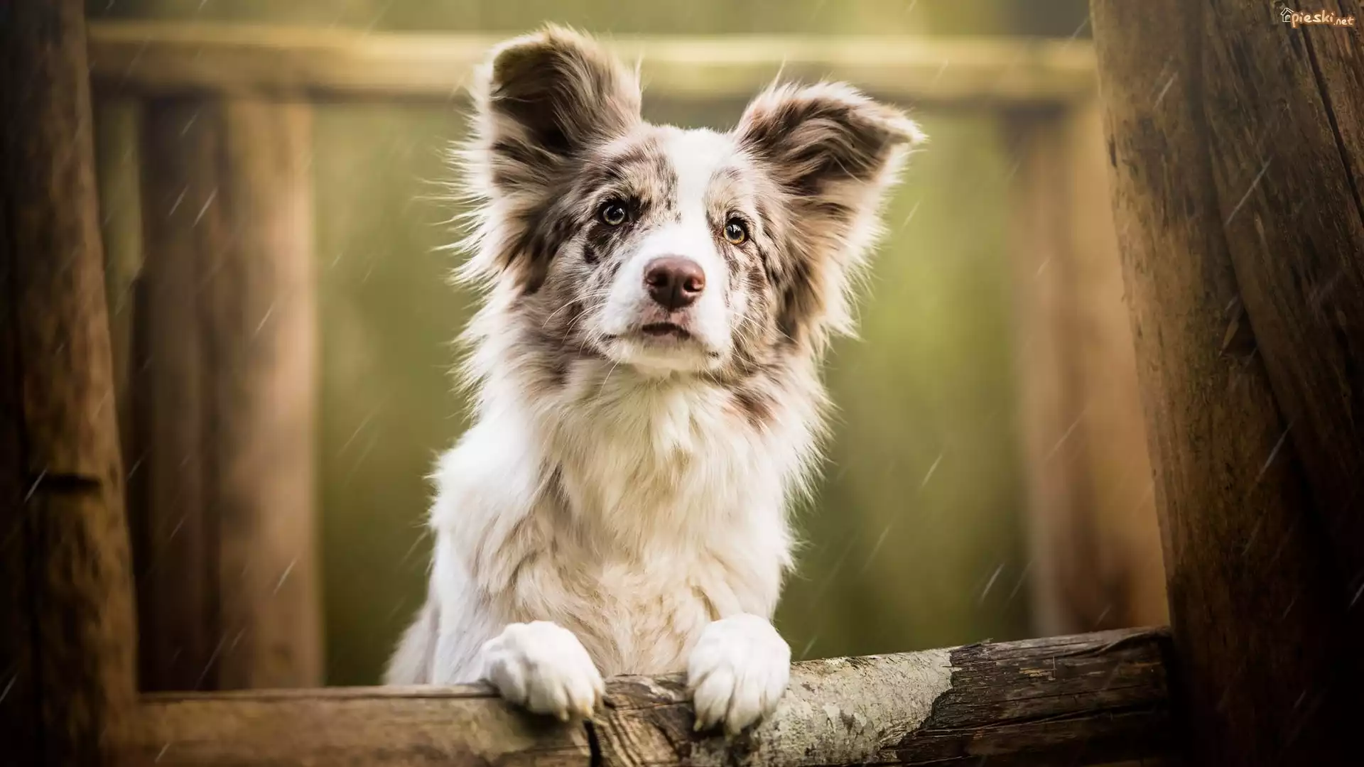 Pies Pies, Border collie, Mordka, Płot, Deszcz