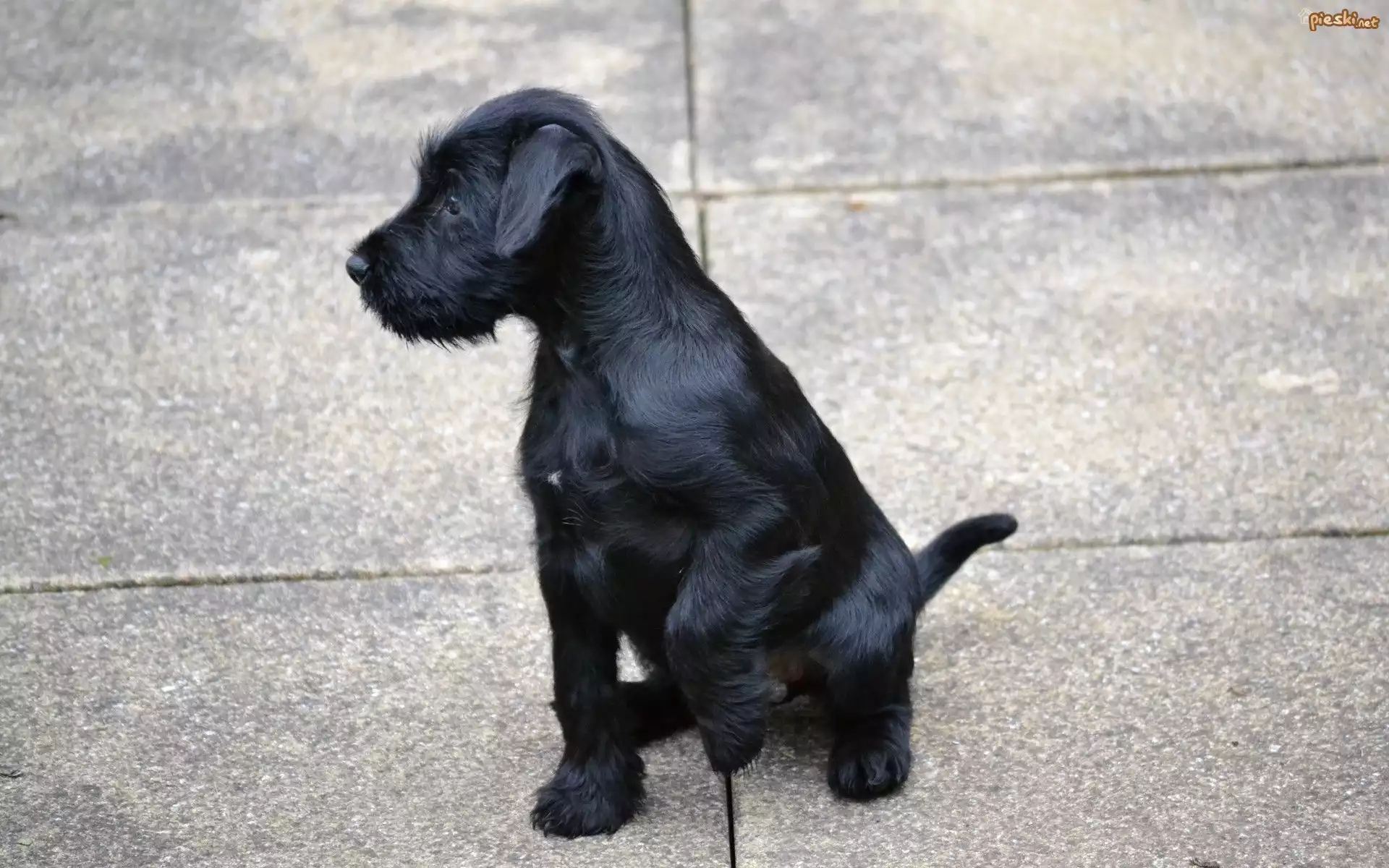 Czarny, Pies, Sznaucer olbrzym, Paprocie Pies, Młody, Czarny, Podniesiona, Łapa
