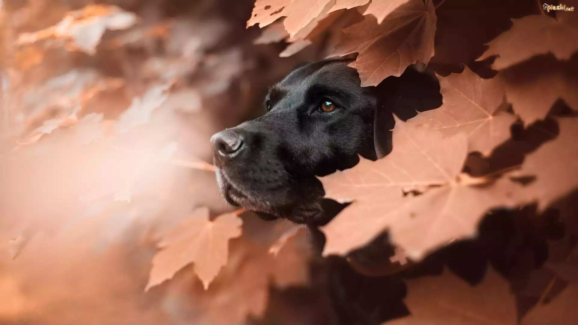 Pies Pies. Labrador retriever, Liście