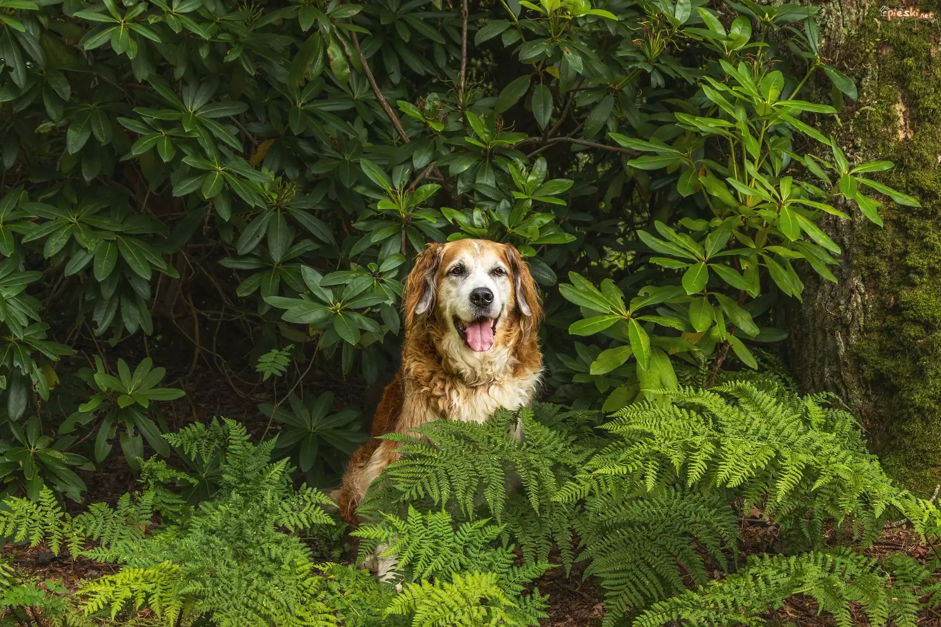 Pies Pies, Paprocie, Rododendron