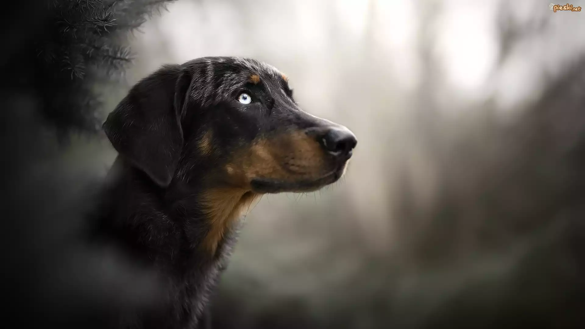 Pies, Mordka, Gałązki, Rozmyte, Tło
