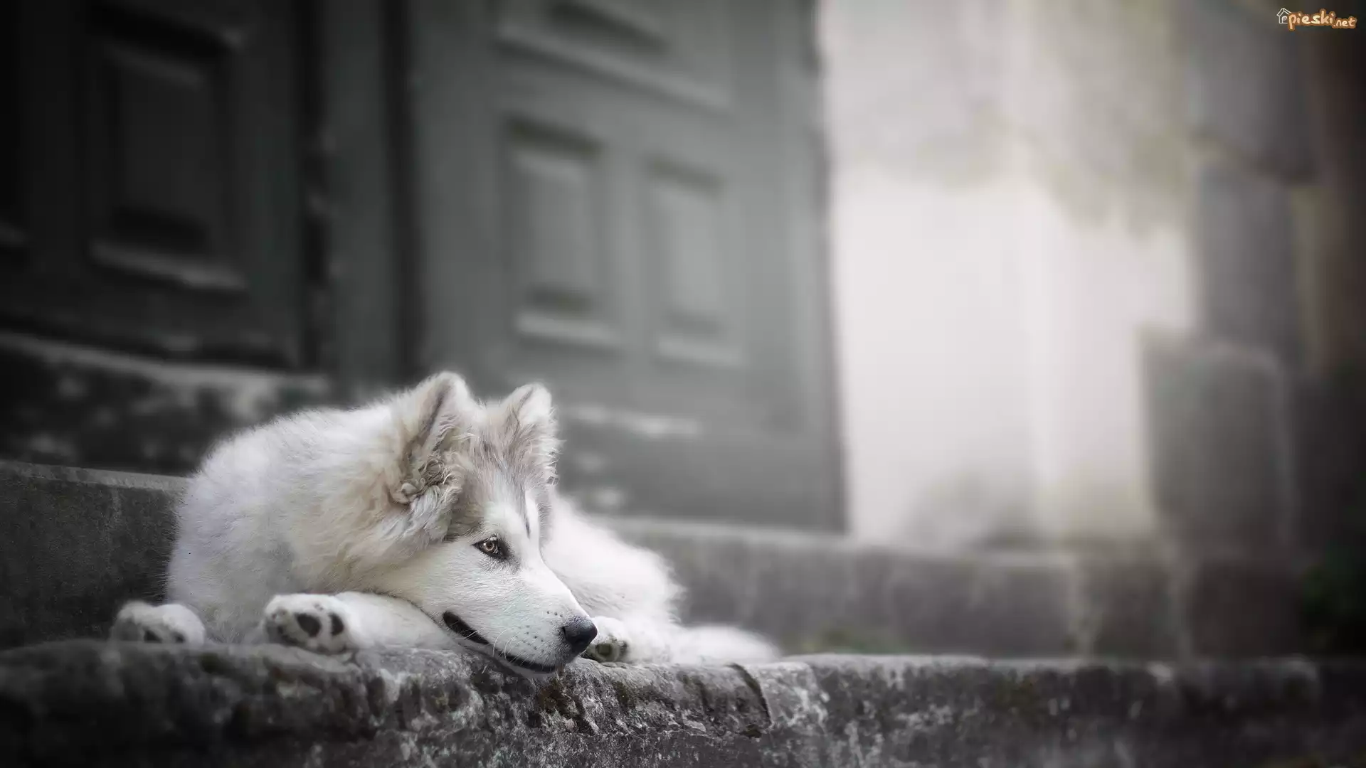 Pies Pies, Siberian husky, Mordka, Schody, Drzwi