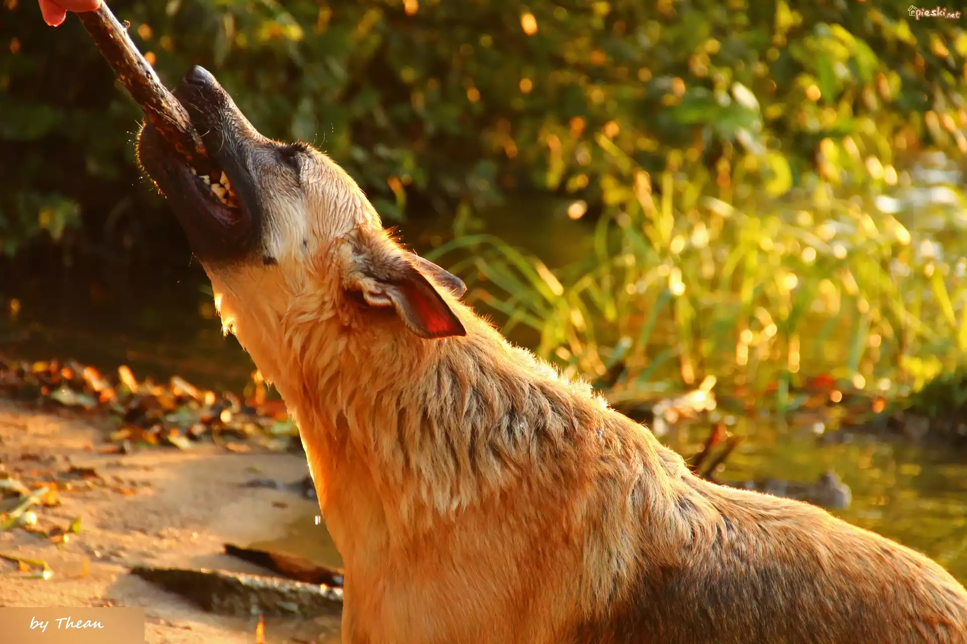 Pies Pies, Bawiący, Się, Kijem
