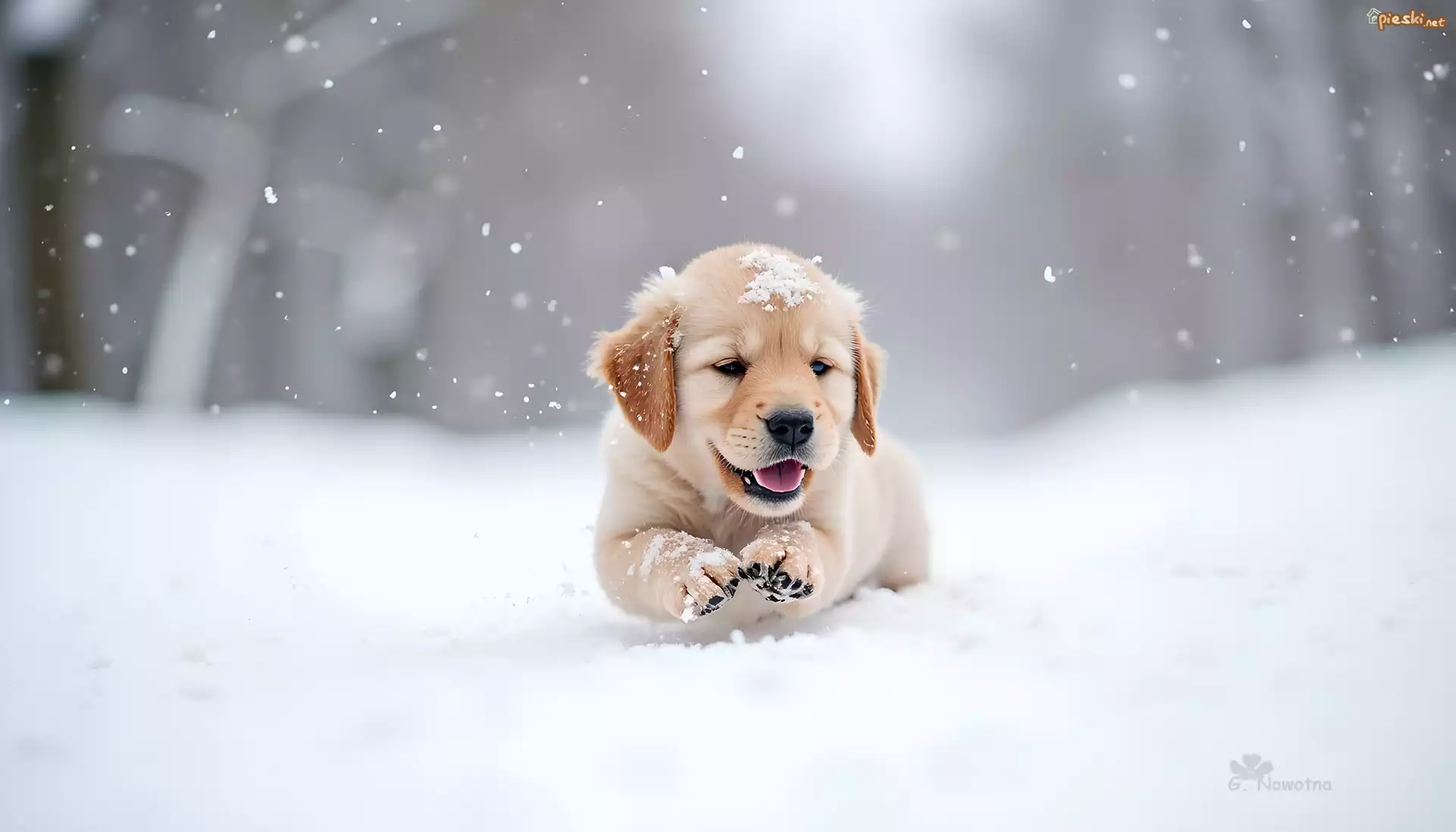 Pies Szczeniak, Pies, Śnieg, Zima, Grafika