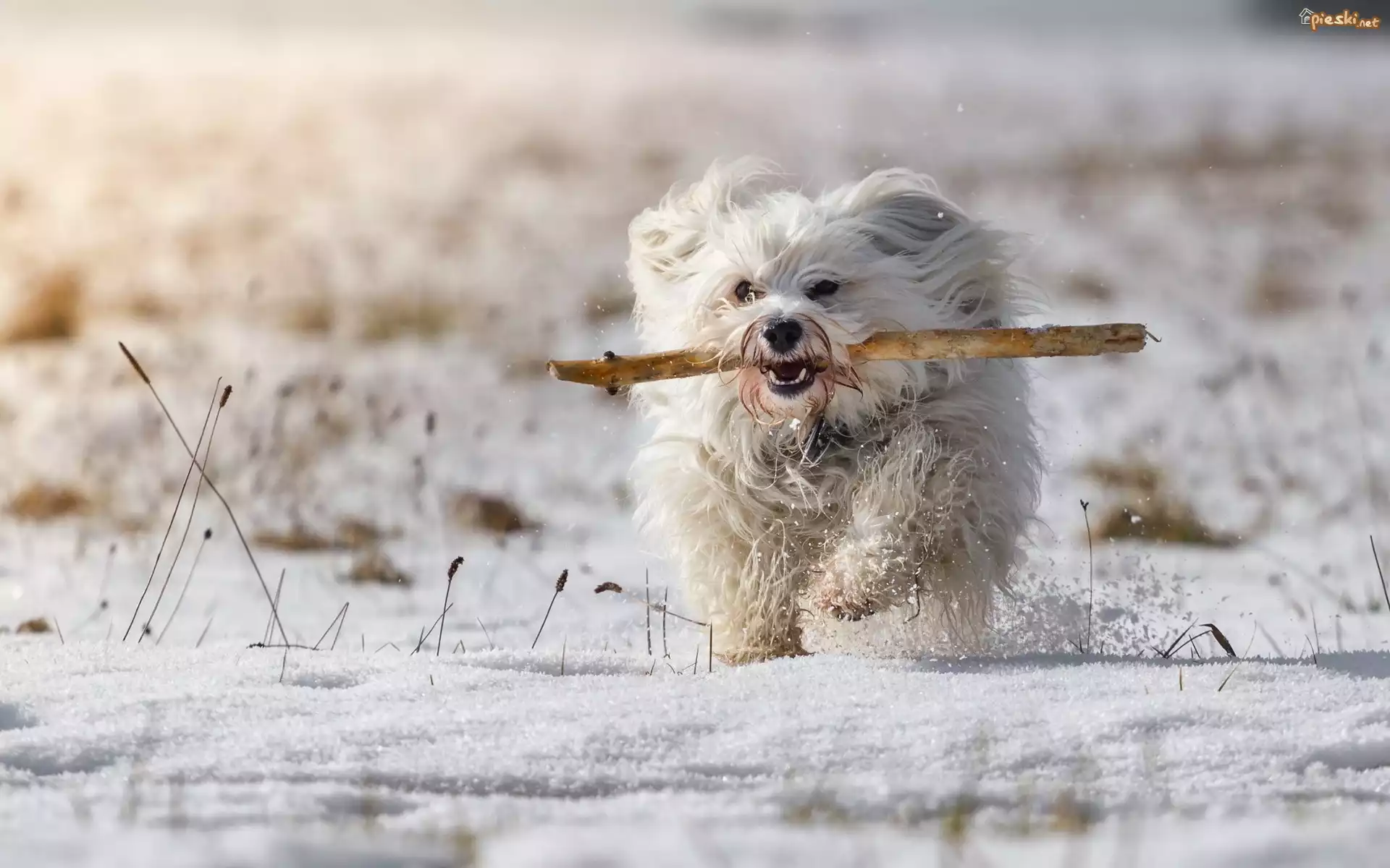 Pies Pies,Hawanczyk, Snieg, Patyk