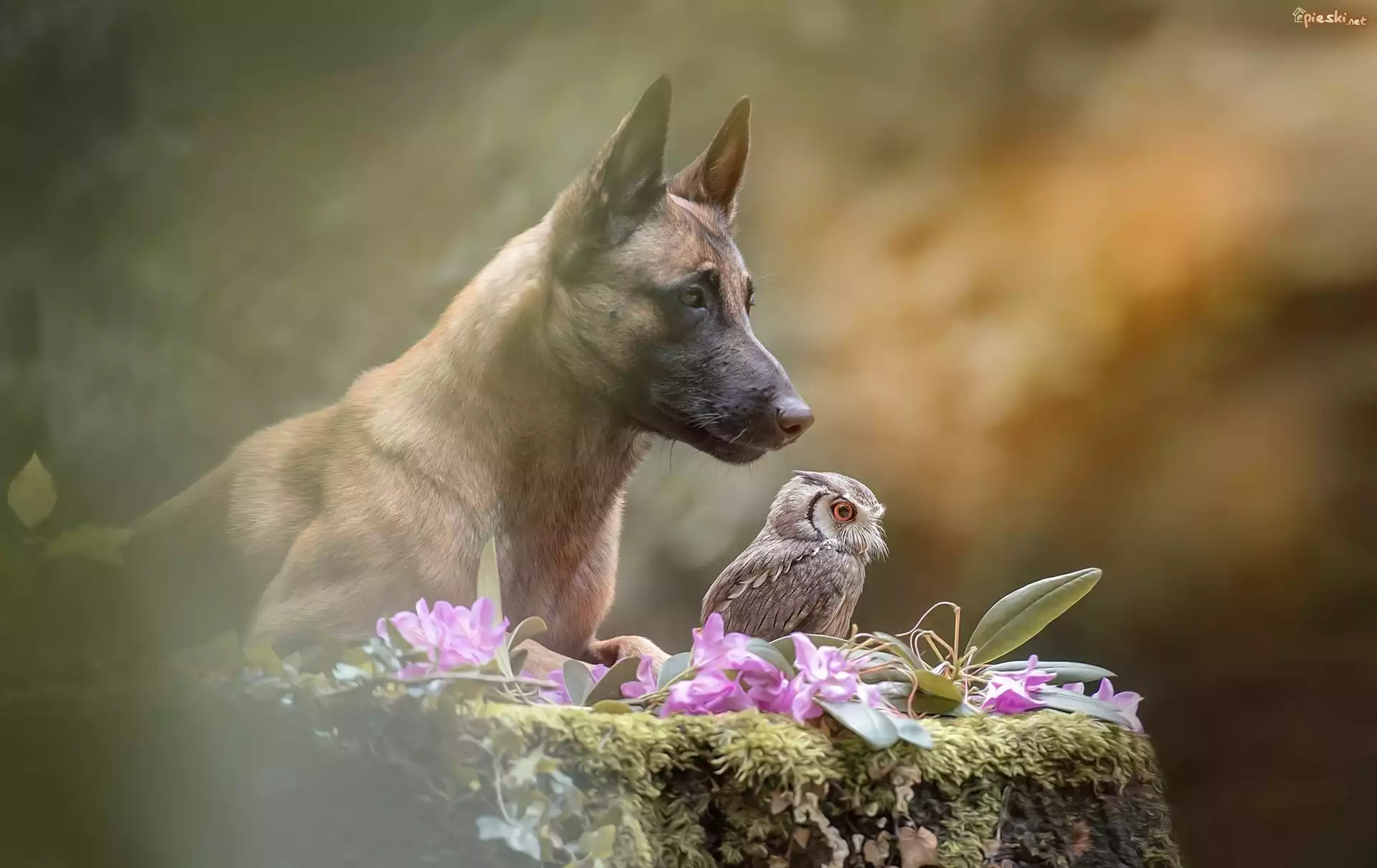 Pies Pies, Owczarek belgijski Malinois, Sowa, Syczek