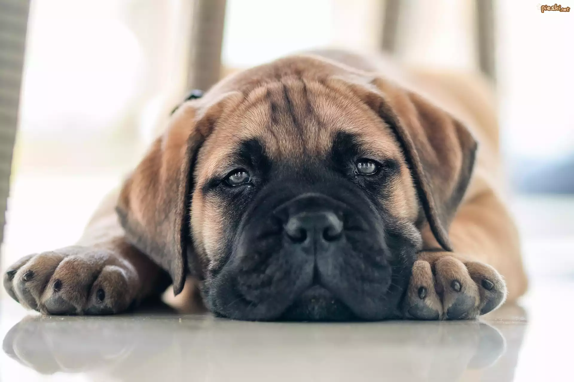 Pies Pies, Szczeniak, Bulmastiff, Spojrzenie, Zbliżenie