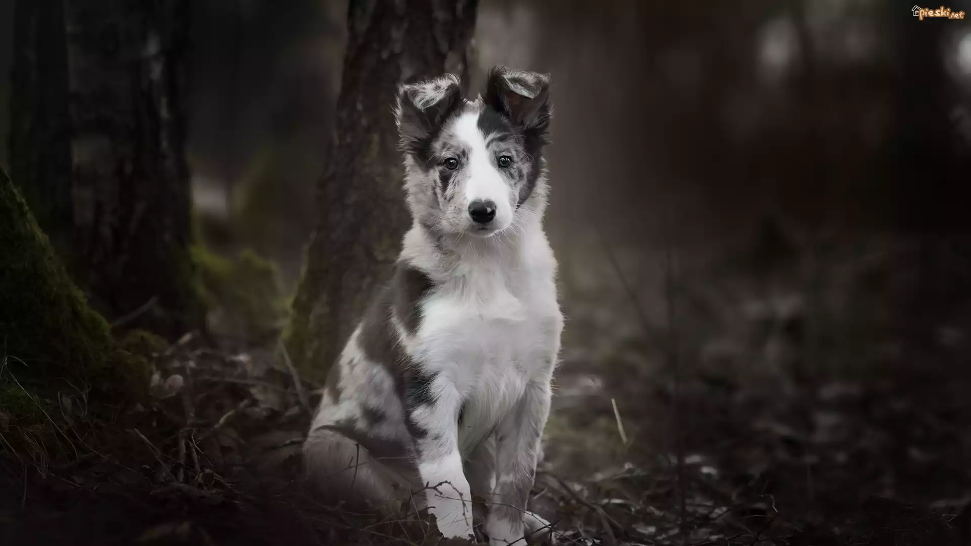 Pies Pies, Border collie, Szczeniak, Drzewa