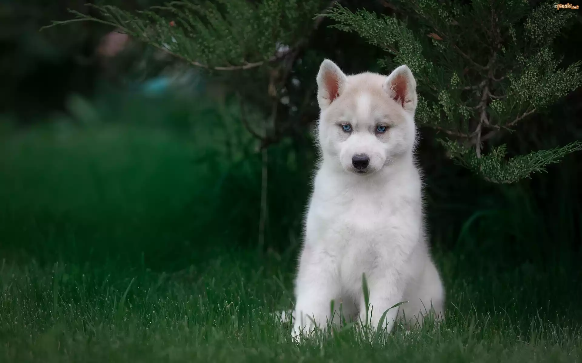 Pies Pies, Siberian husky, Szczeniak, Krzew