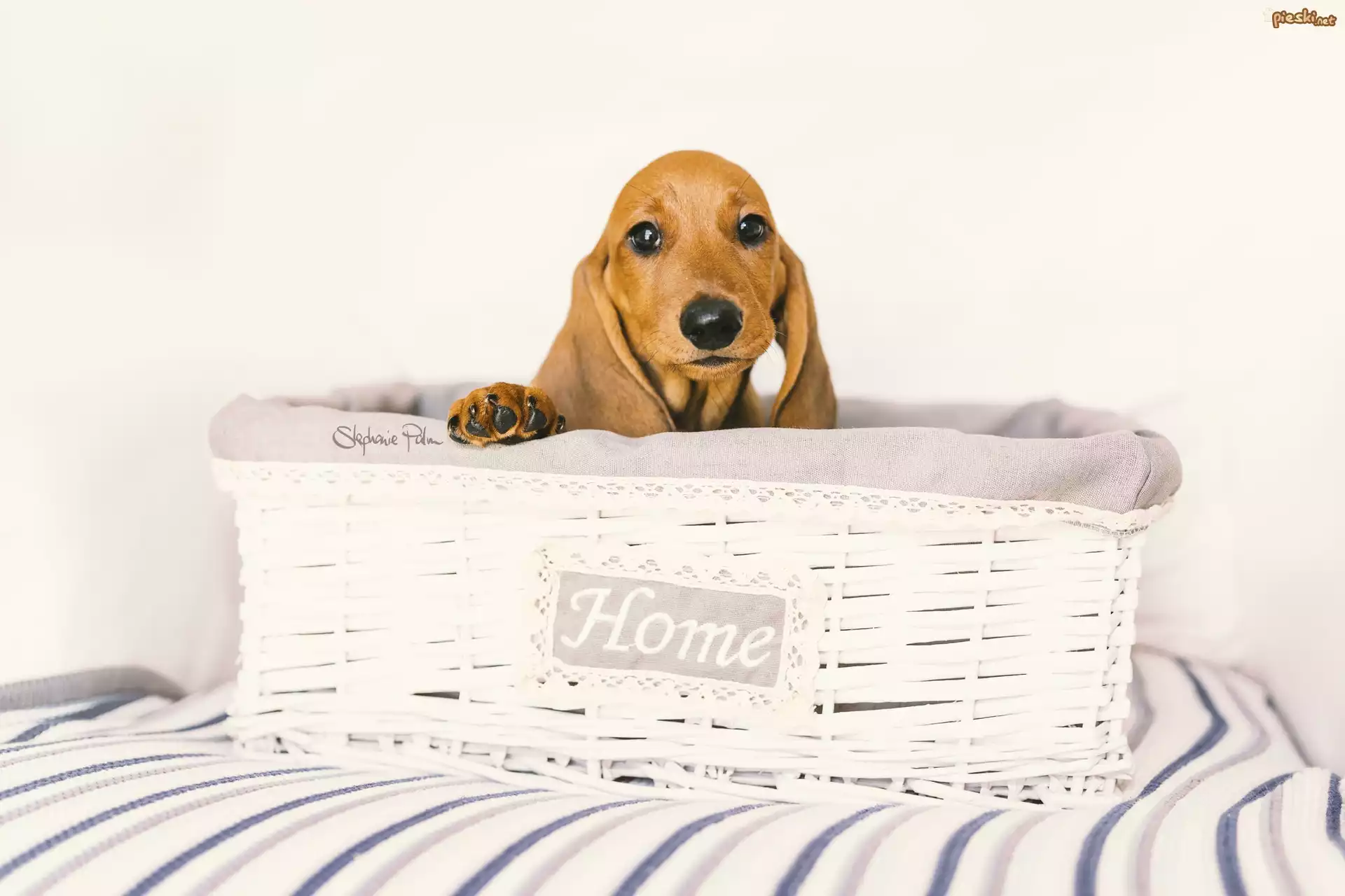 Pies Pies, Jamnik, Szczeniak, Kosz