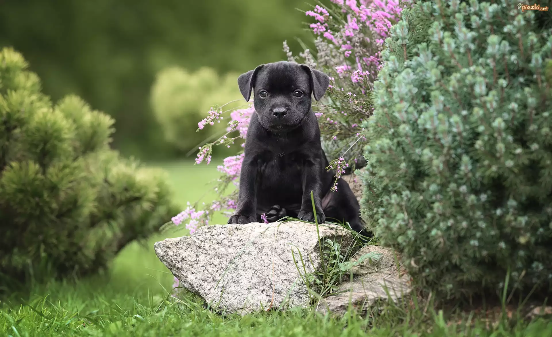 Pies Czarny, Pies, Szczeniak, Kamień, Ogród