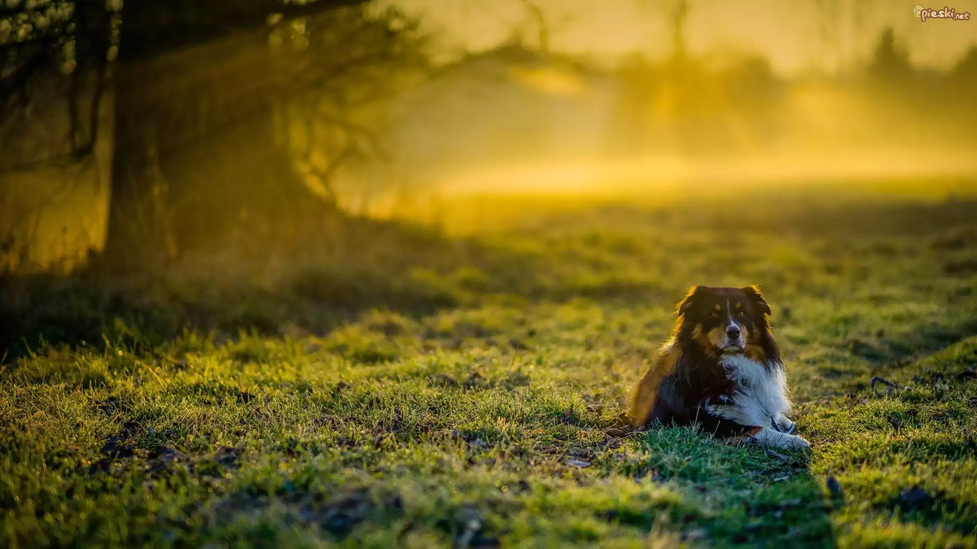 Pies Pies, Owczarek australijski, Trawa, Drzewa