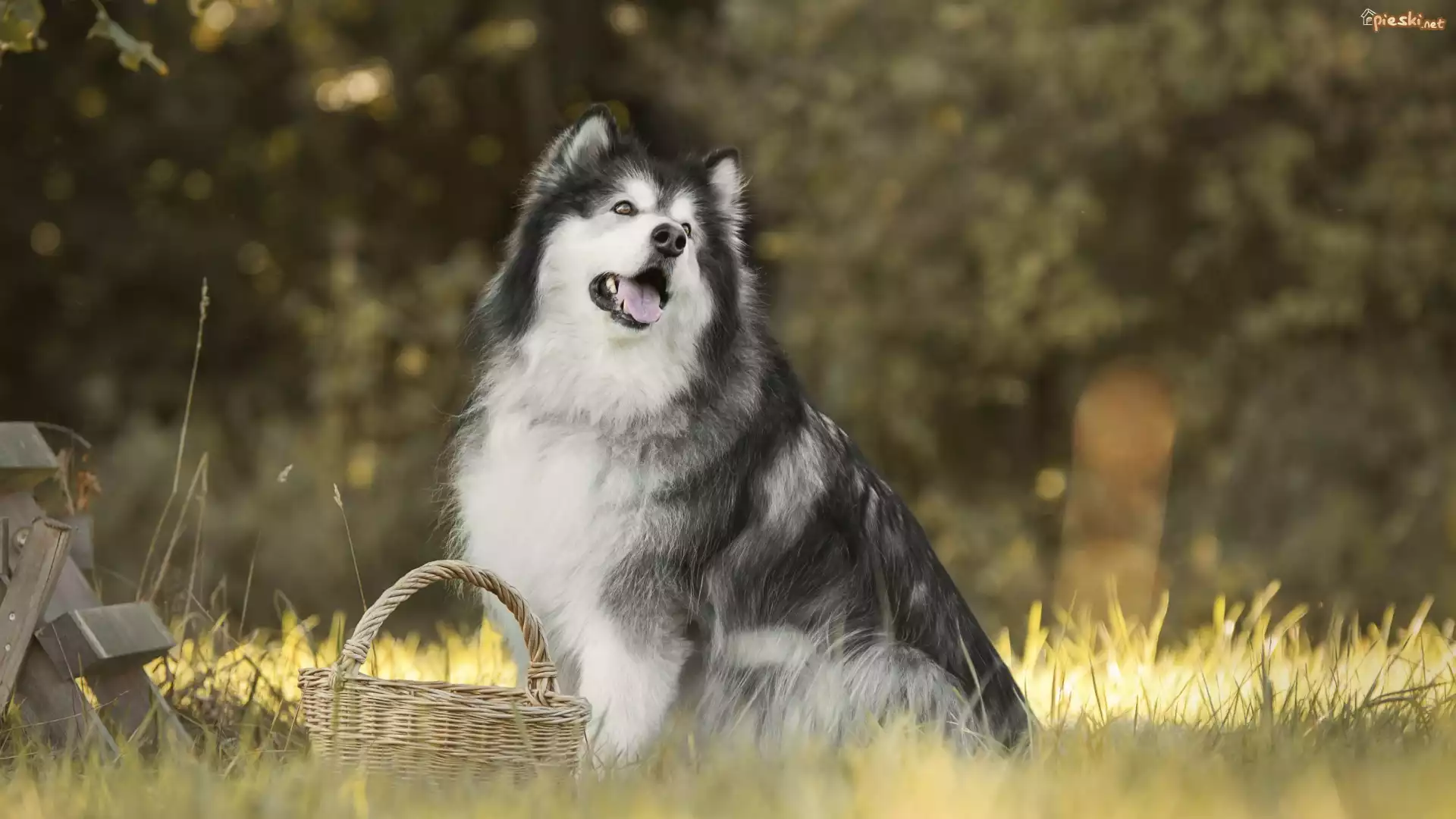 Pies Pies, Alaskan malamute, Trawa, Kosz
