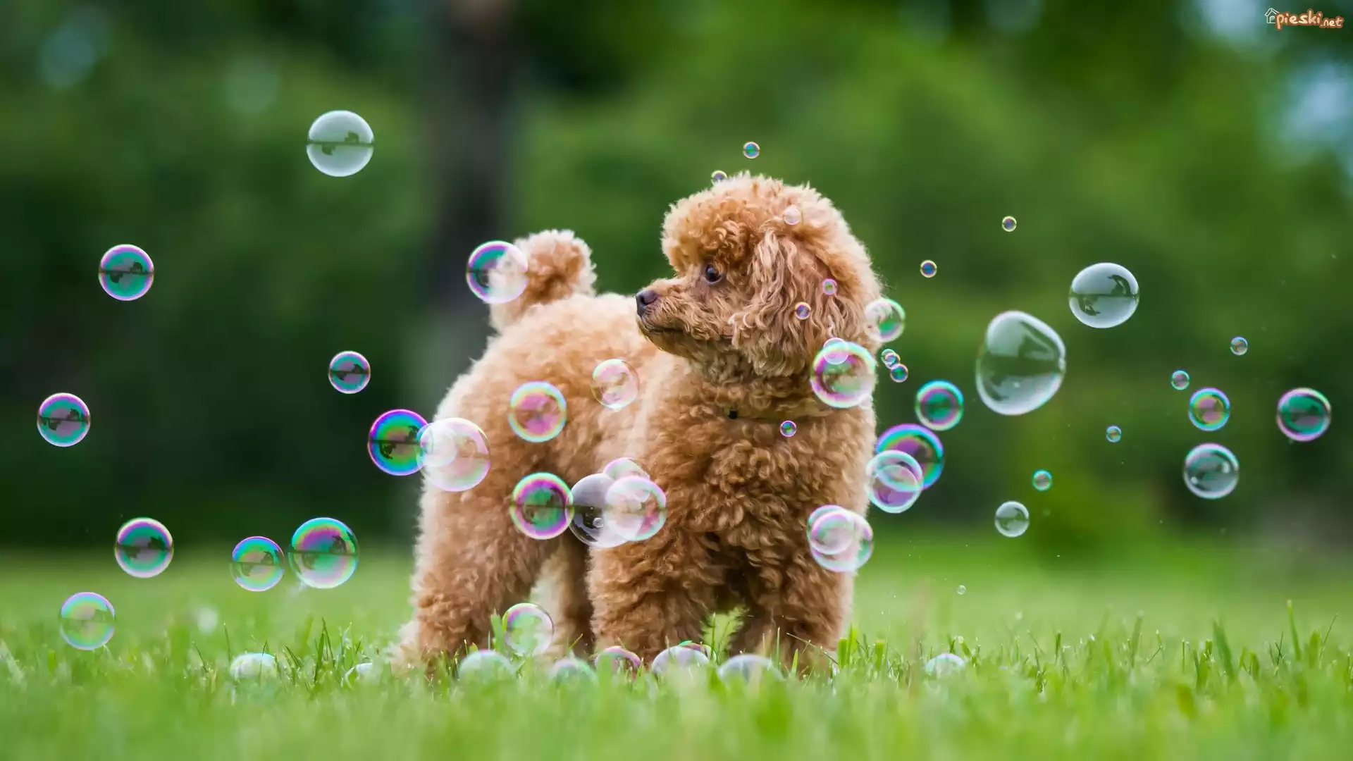 Pies Pies, Pudel, Trawa, Bańki