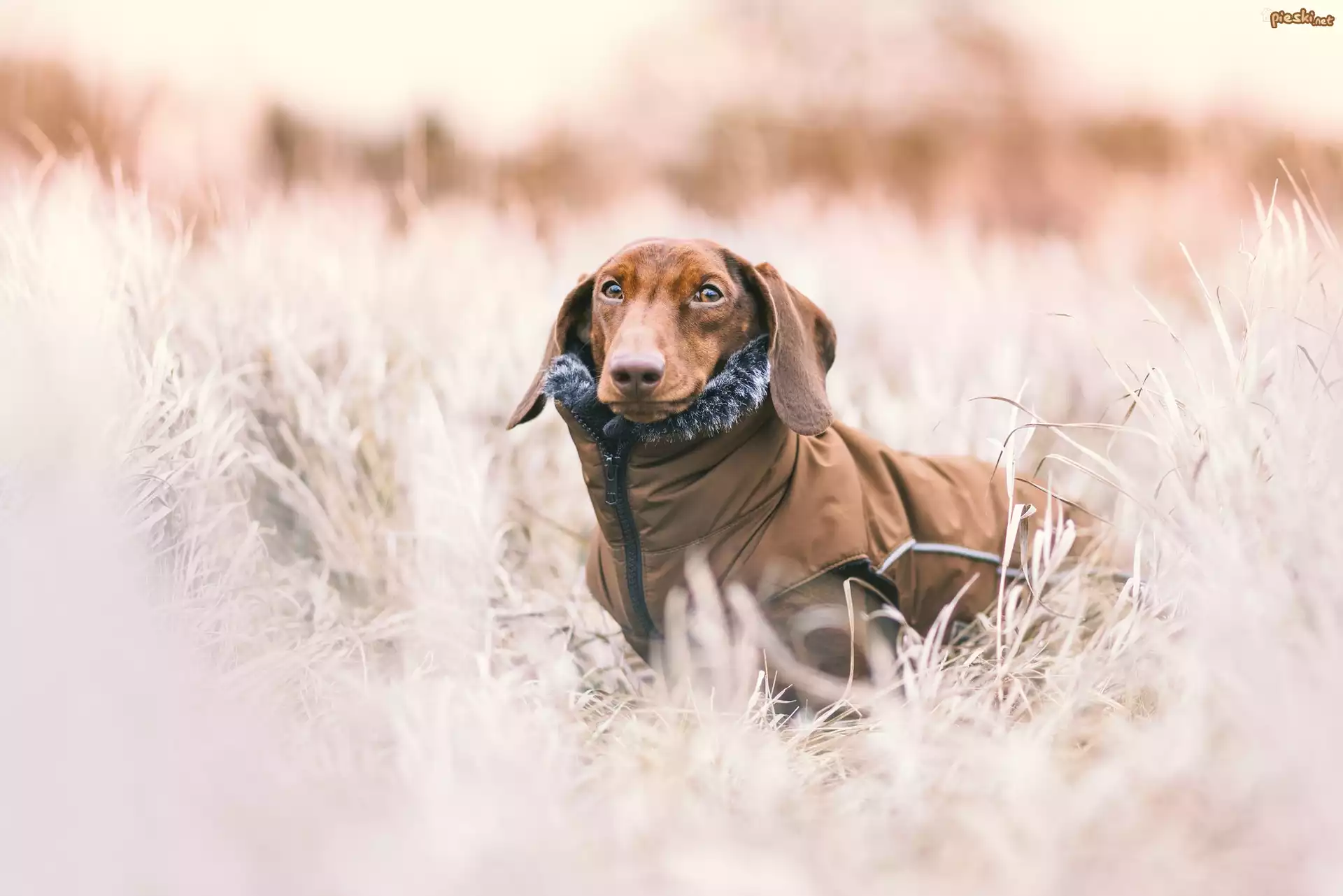 Pies Pies, Jamnik, Ubranko, Trawa, Szron