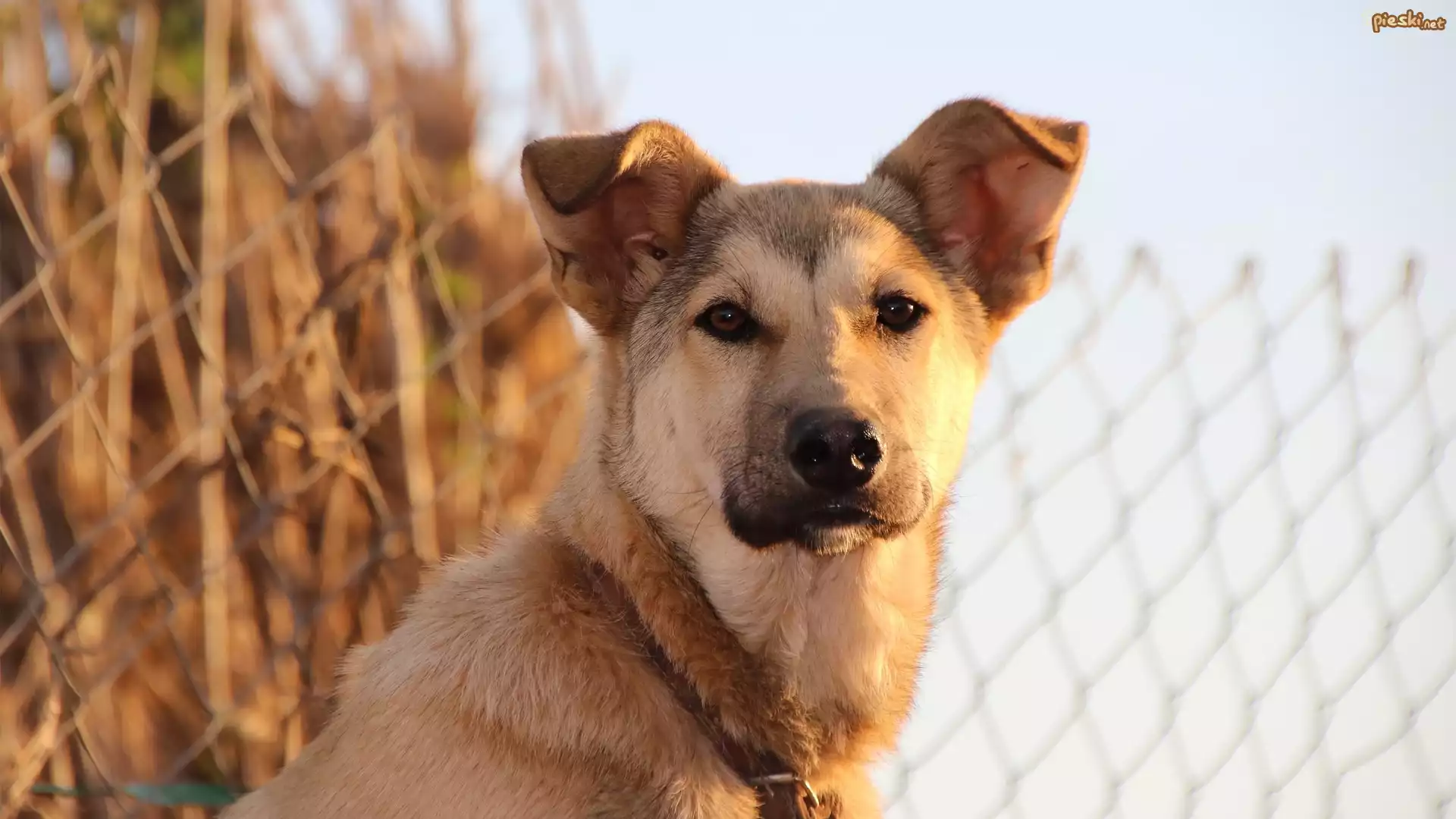 Pies Pies, Mordka, Spojrzenie, Sterczące, Uszy, Siatka