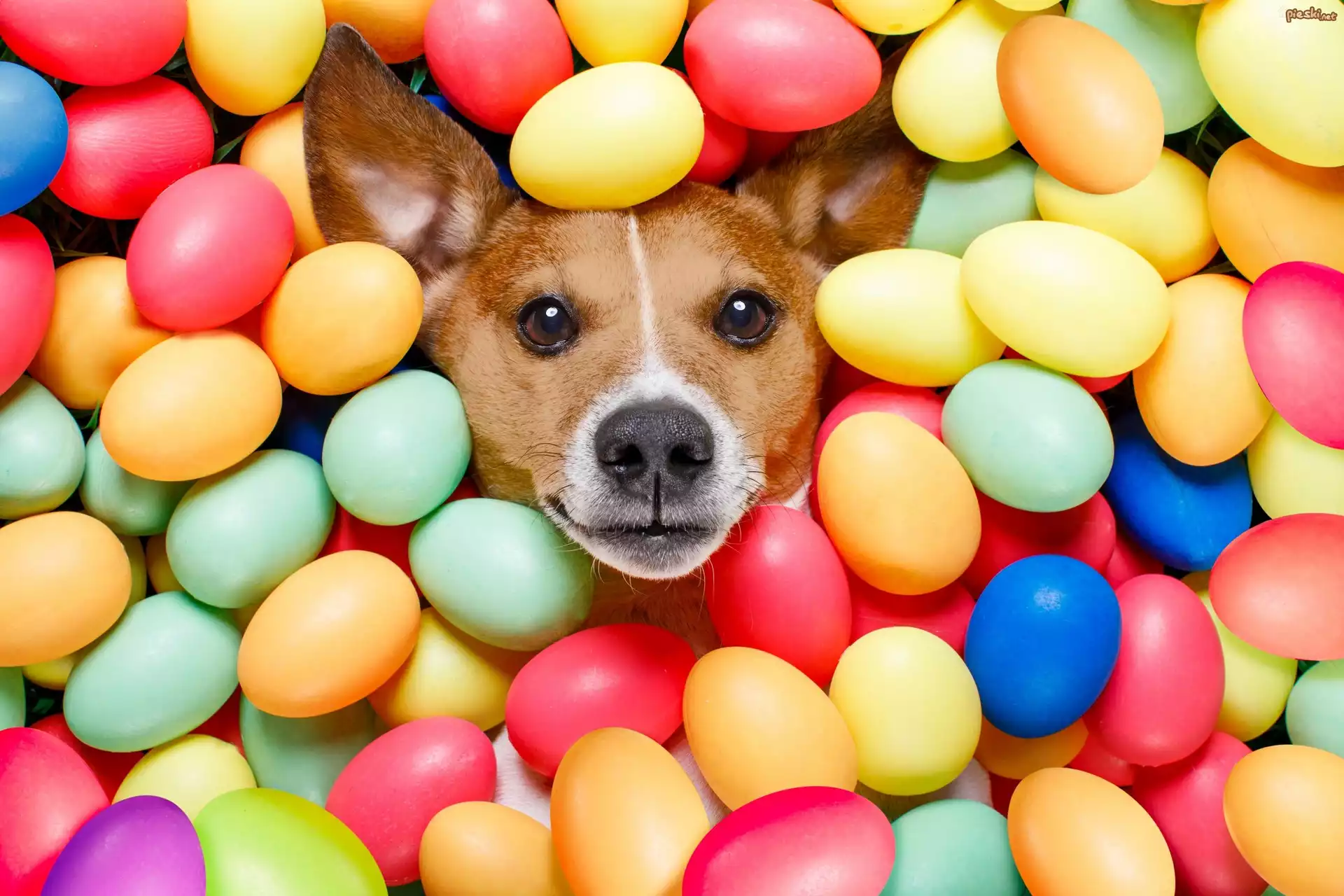 Pies Pies, Jack russell terrier, Wielkanoc, Pisanki