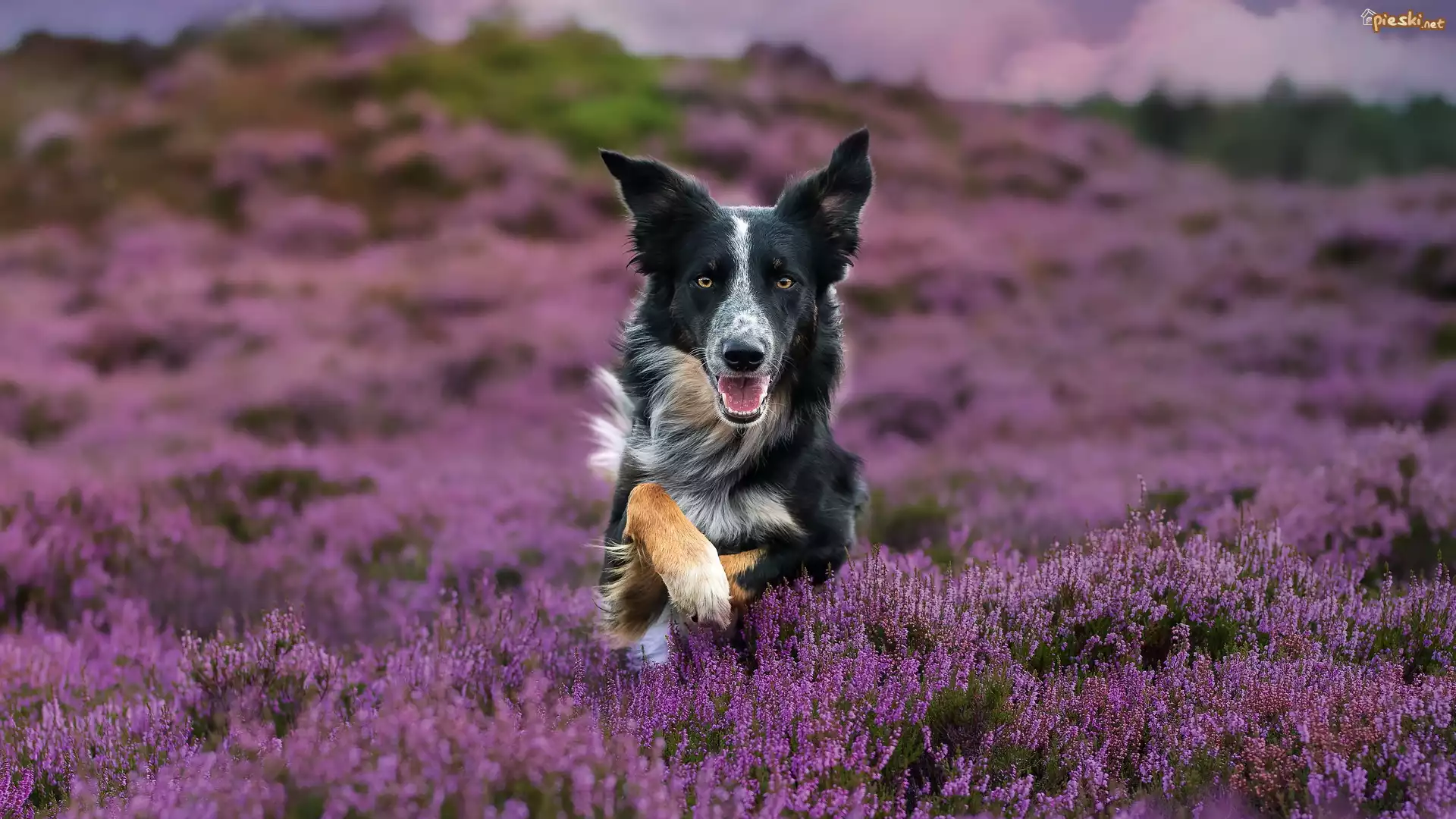 Pies Pies, Border collie, Wrzosy, Wrzosowisko