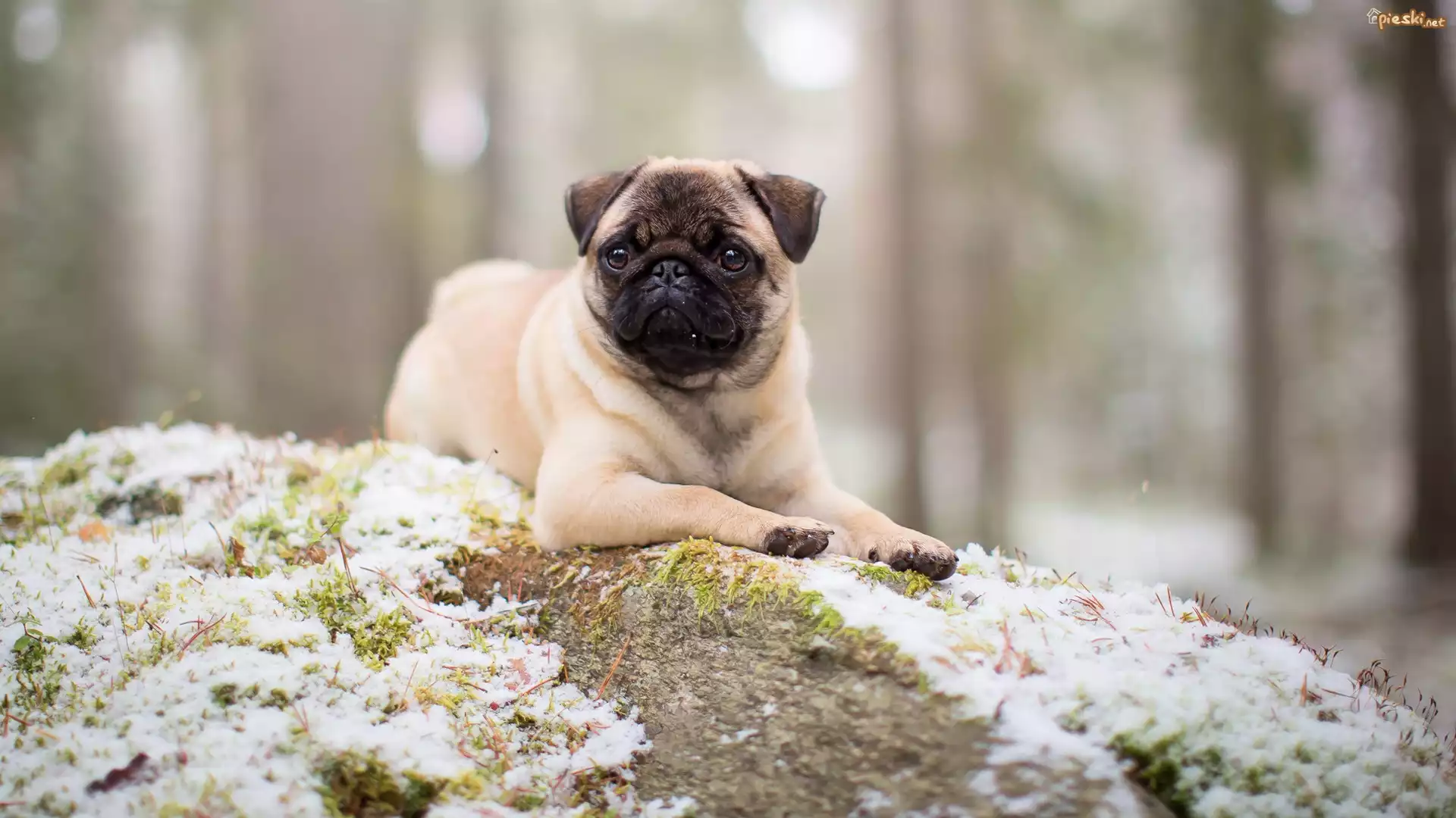 Pies Pies, Mops, Wzniesienie, Śnieg