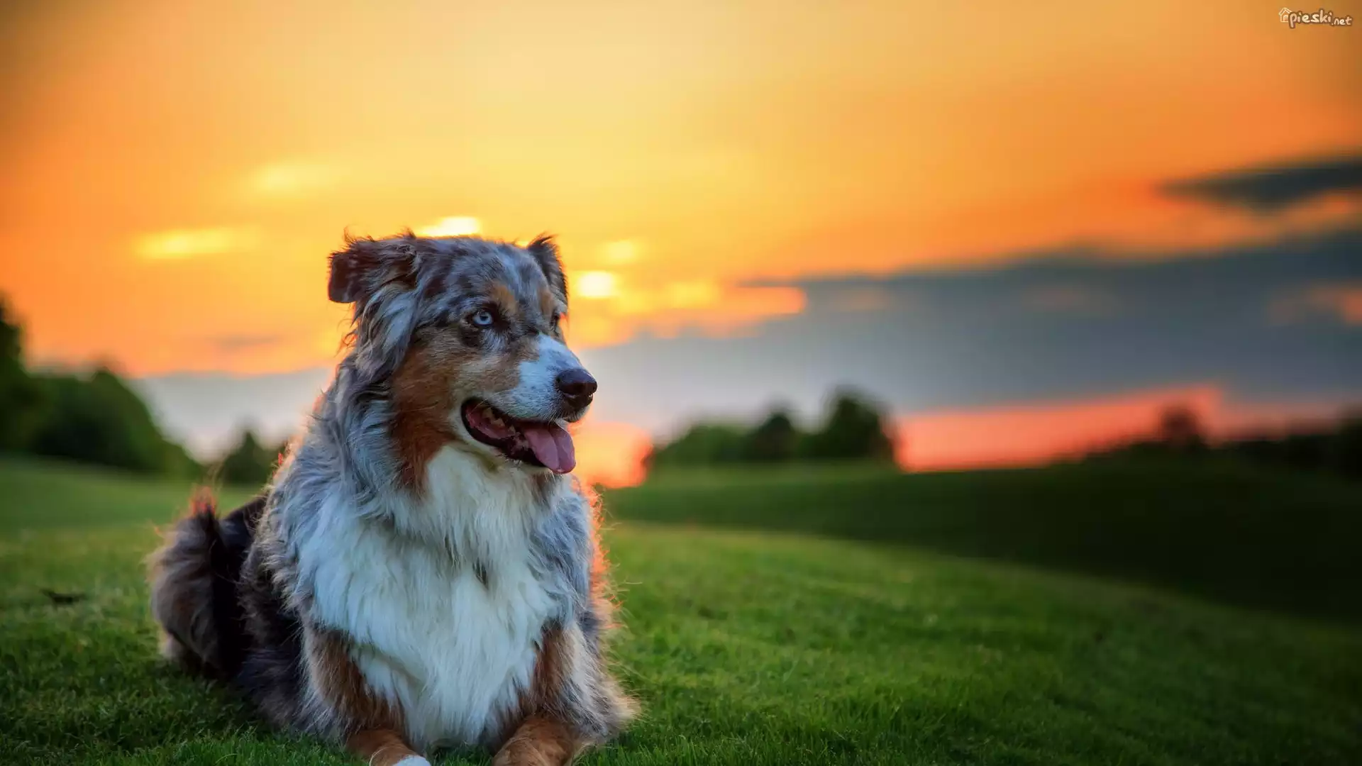 Pies Pies, Owczarek Australijski, Zachód, Słońca