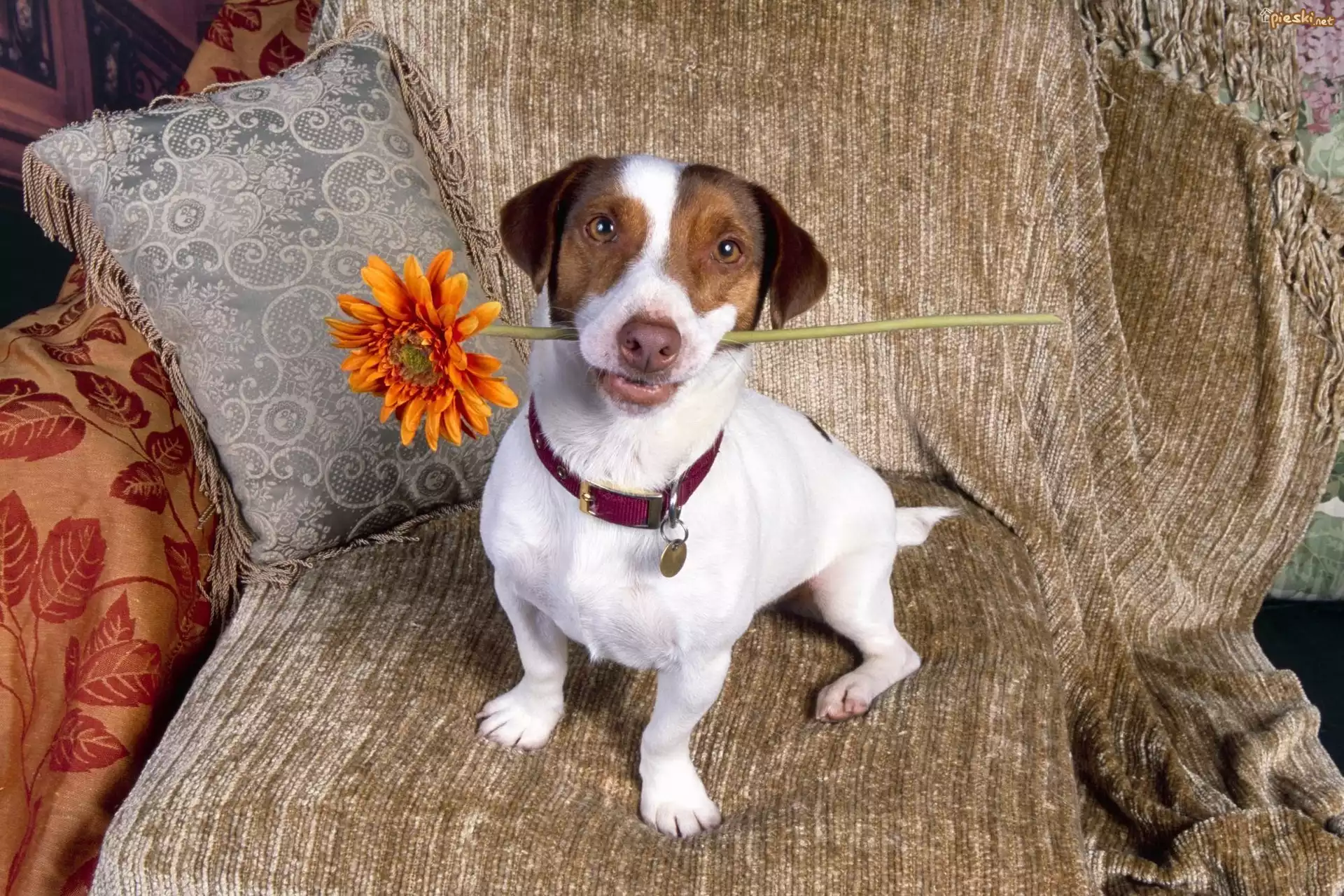 Pies Piesek, Kwiatek, Fotel, Poduszka