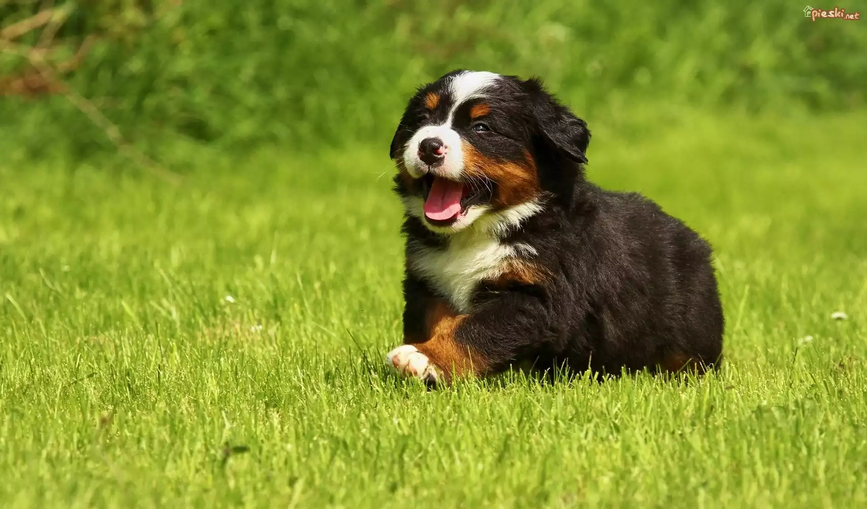 Trzy, Pieski, Wózek, Szczeniaki Pies, Berneński pies pasterski, Zboże, Mordka, Uszy Biały, mały, piesek Pies, Szczeniak, Berneński pies pasterski Pies, Berneński pies pasterski, Most, Śnieg Berneński pies pasterski szczeniak, dorosły, Tosa szczeniak, Samojed Szczeniak Piesek, Szczeniak, Golden retriever Pies, Jęzor Dwa, młode, Owczarki szkockie długowłose Pies, Szczeniak słodki, Płochacz holenderski, Kooikerhondje, zielona, trawa