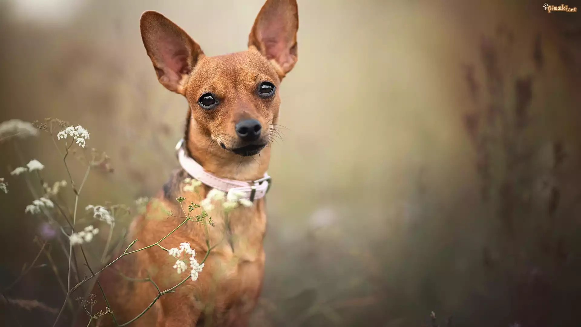 Pies Pies, Pinczer miniaturowy, Obroża, Mordka, Uszy, Długie, Stojące