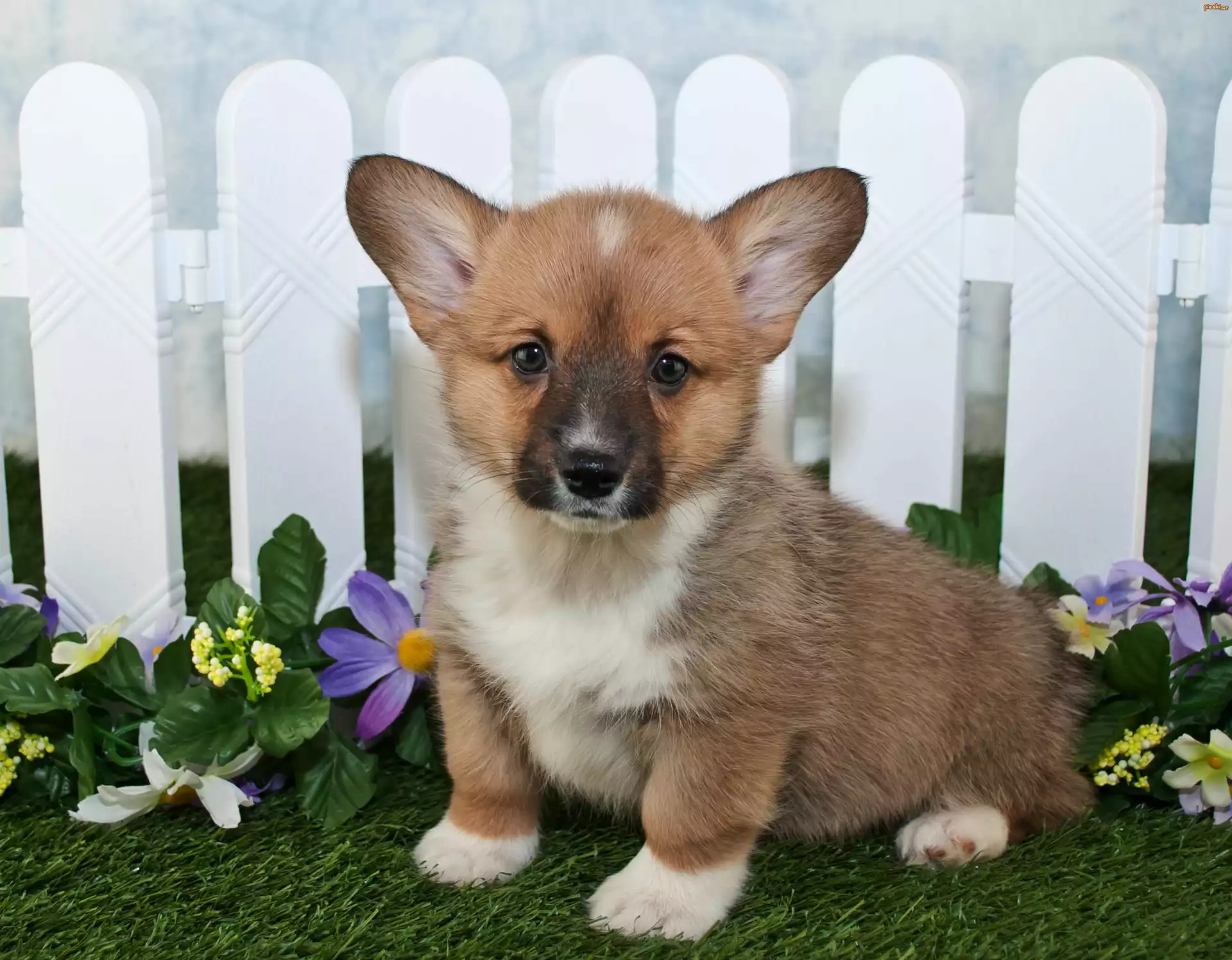Szczeniak, Płot, Kwiaty