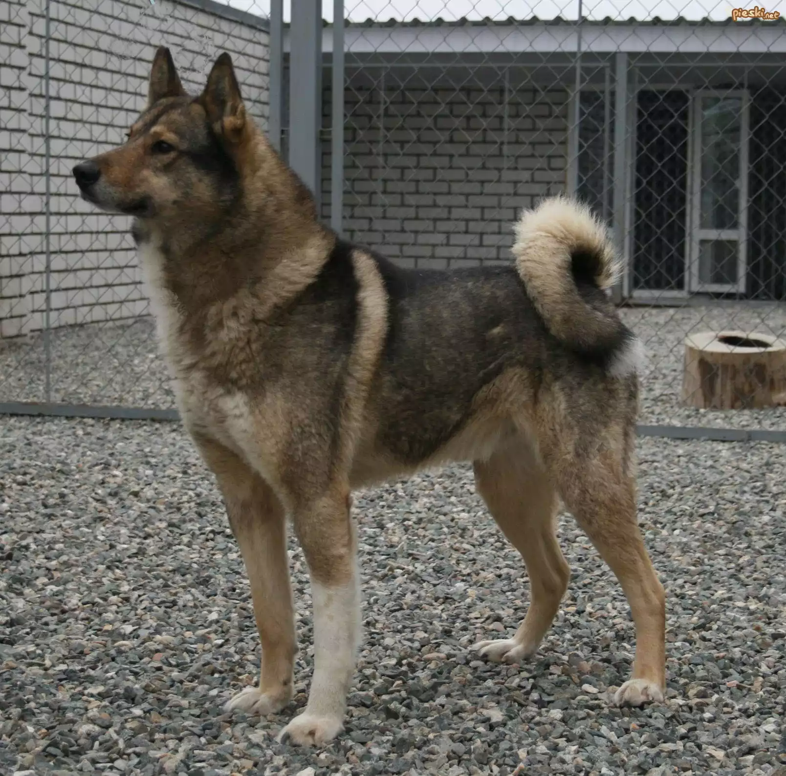 Łajka zachodniosyberyjska, płot, kamyki