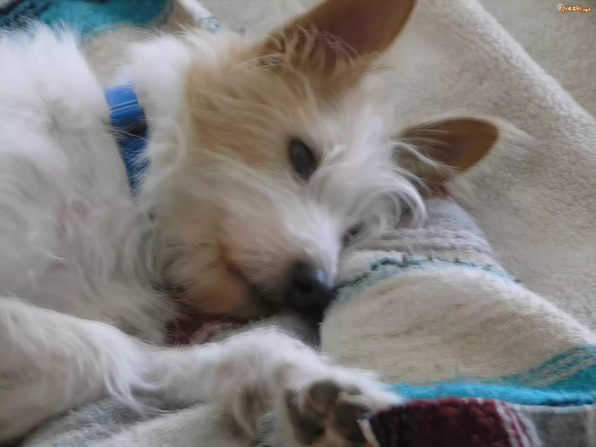 Podengo portugalski, niebo, skały biały, Podengo portugalski Podengo portugalski, piasek