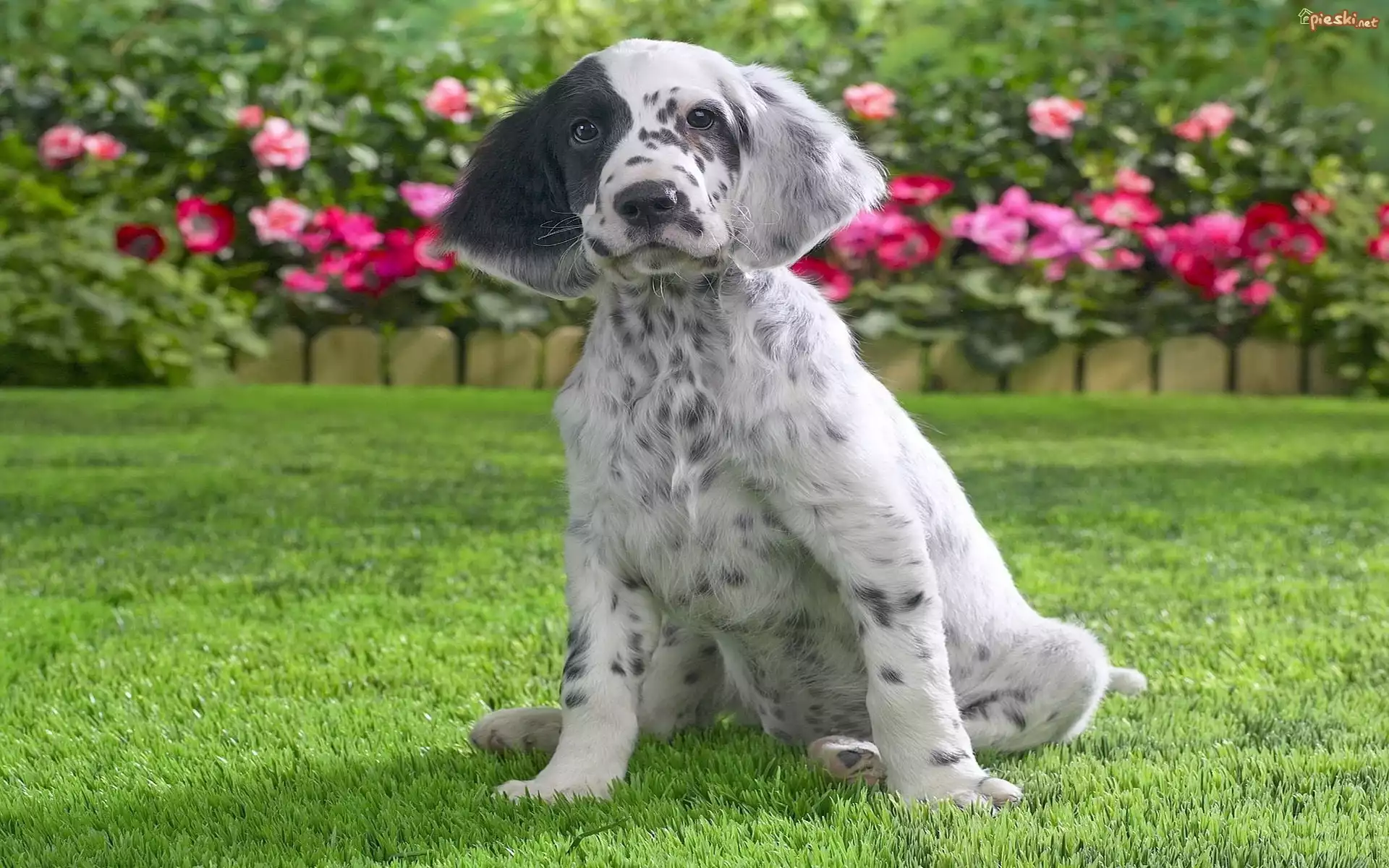 Pointer, Łatka, Trawa, Kwiaty