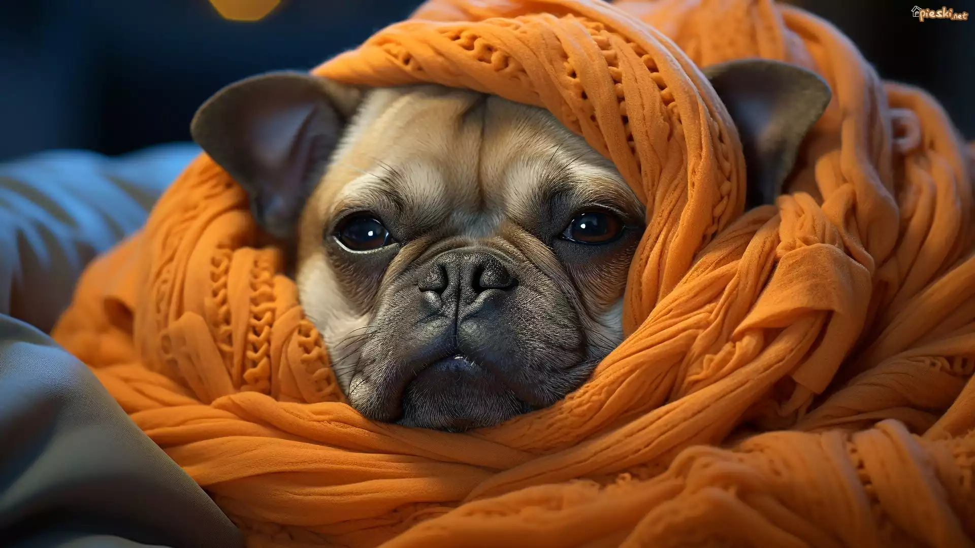 Pies Pies, Buldog francuski, Pomarańczowy, Szal, Al