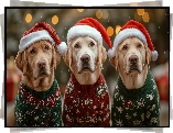 Pies Trzy, Psy, Czapki, Mikołaja, Swetry