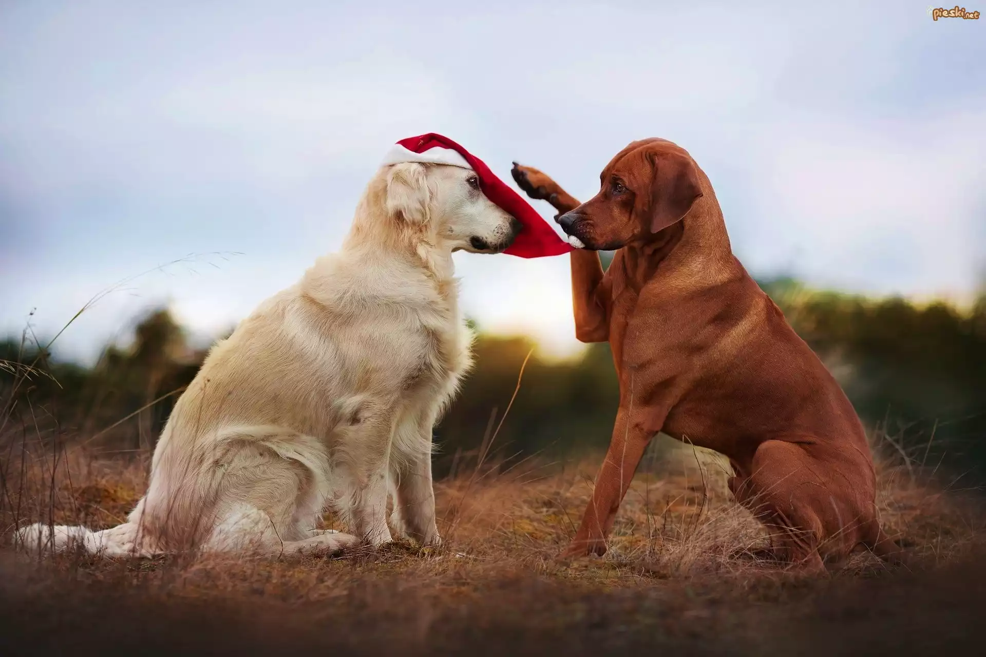 Pies Dwa, Psy, Golden retriever, Rhodesian ridgeback, Czapka