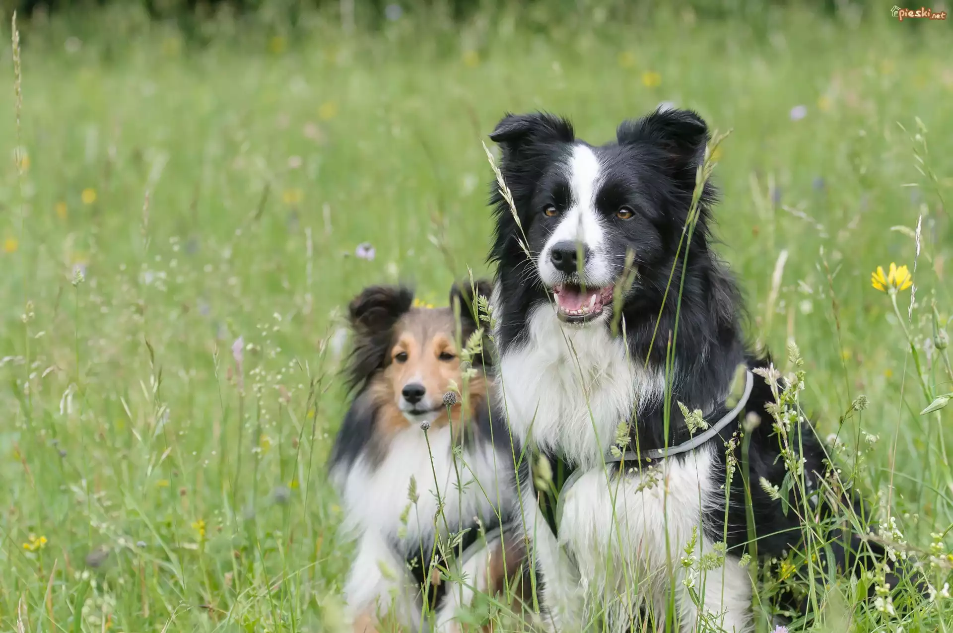 Dwa, Psy, Owczarek szetlandzki, Border collie, Trawa