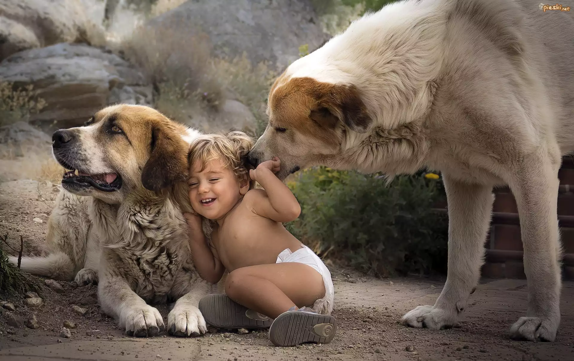 Pies Psy, Dziecko, Zabawa, Owczarek środkowoazjatycki