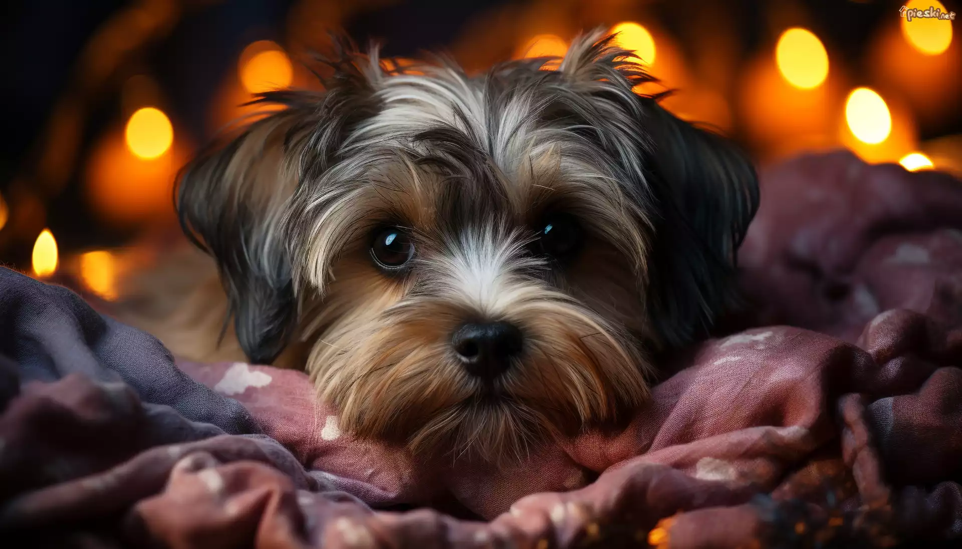 Pies, Yorkshire terrier, Pyszczek, Kolorowa, Tkanina, Blask