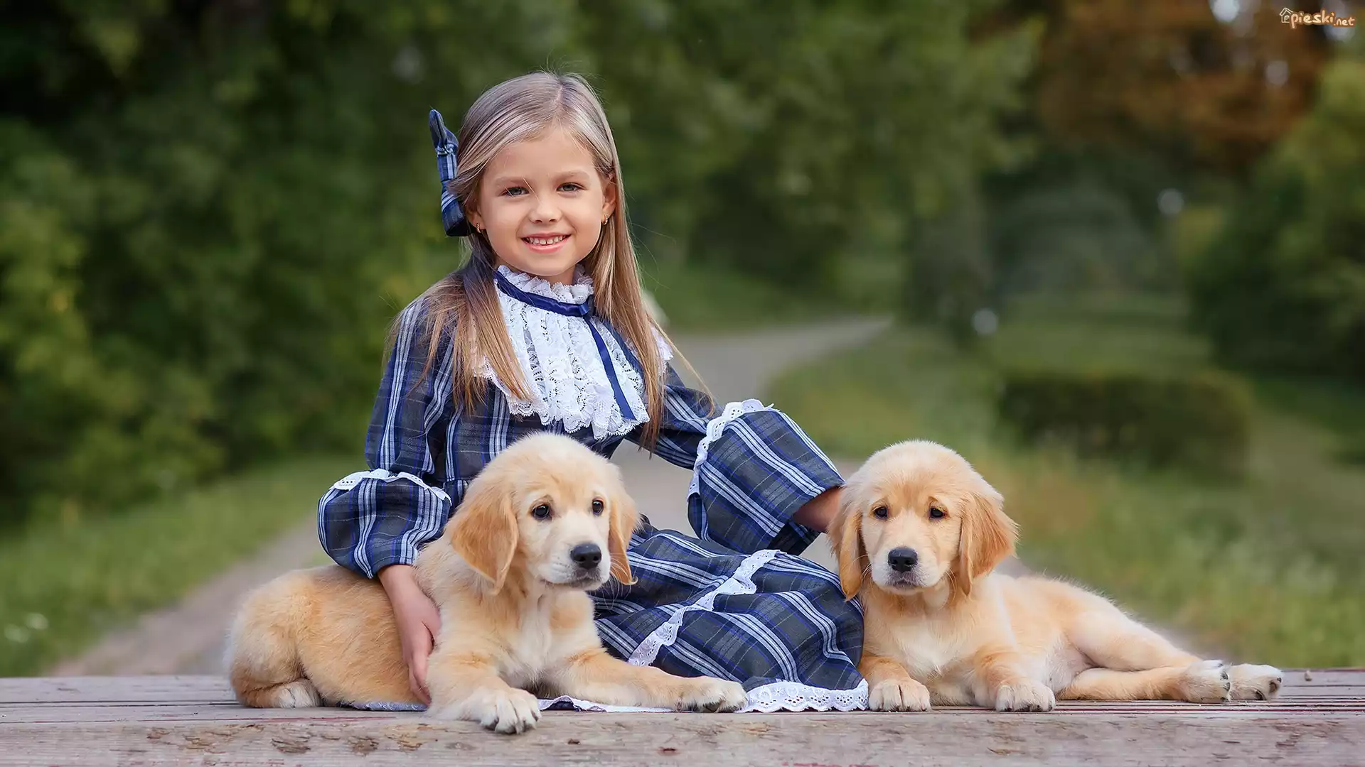 Dziewczynka, Szczeniaki, Golden retriever