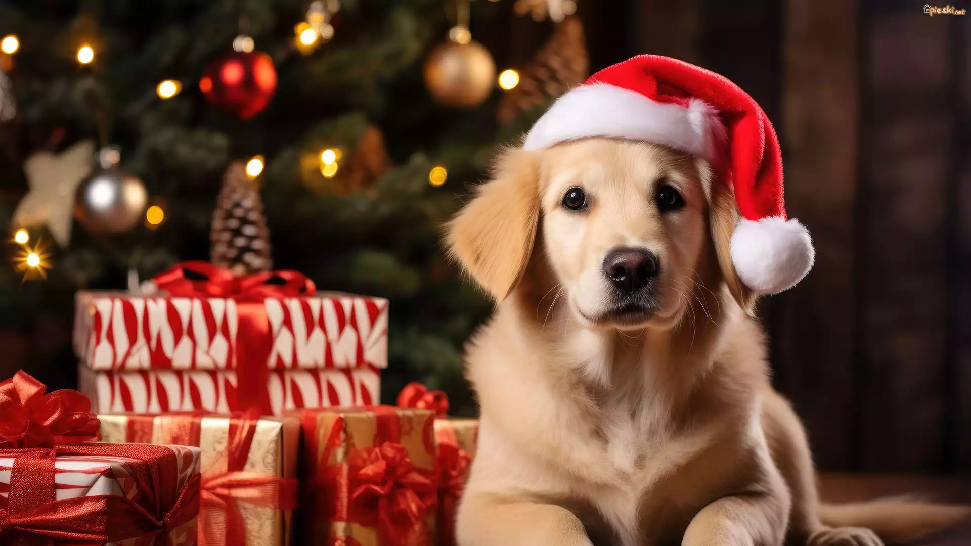 Pies Golden retriever, Pies, Mikołaj, Prezenty