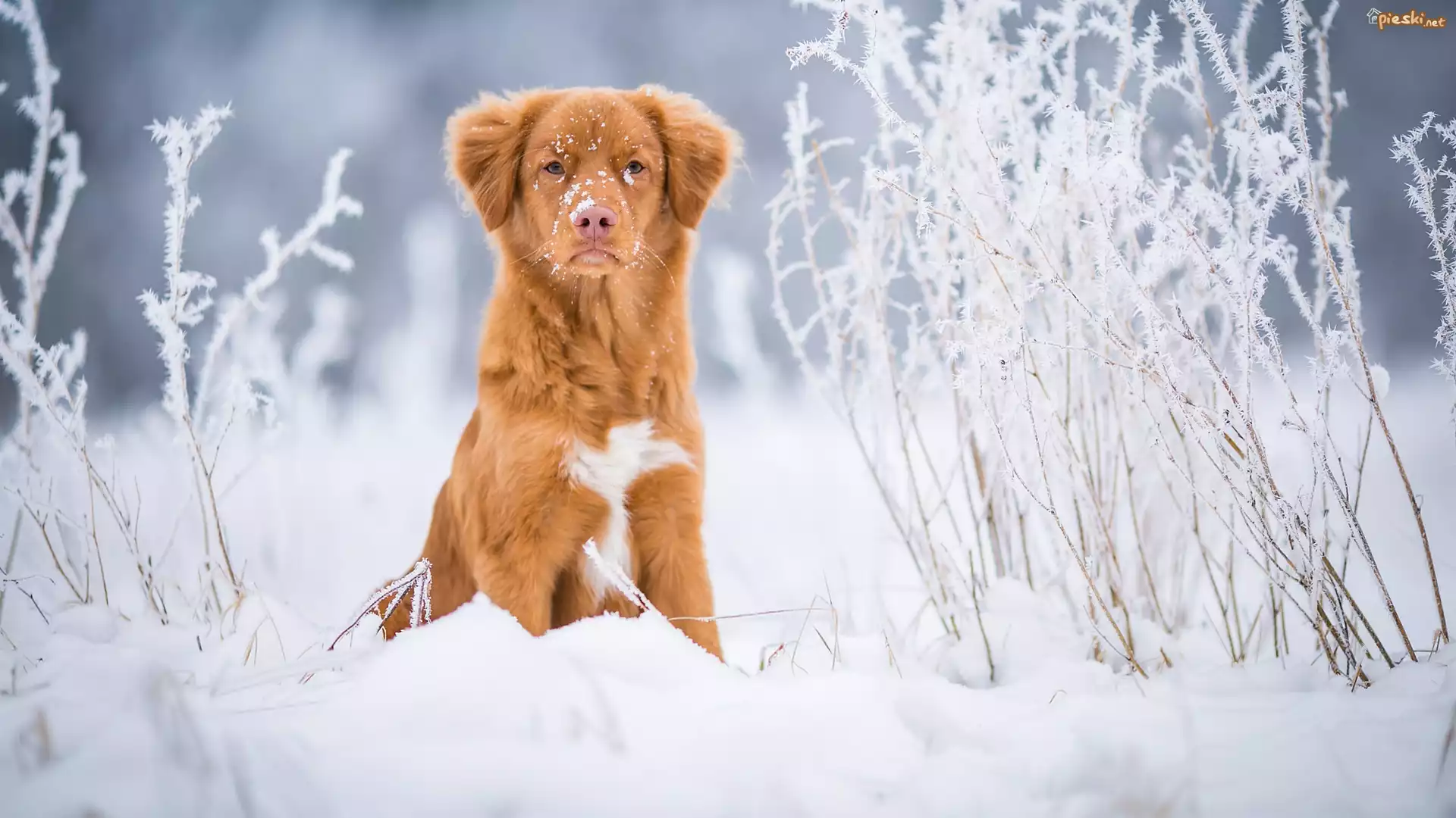 Pies Pies, Retriever z Nowej Szkocji, Śnieg, Rośliny