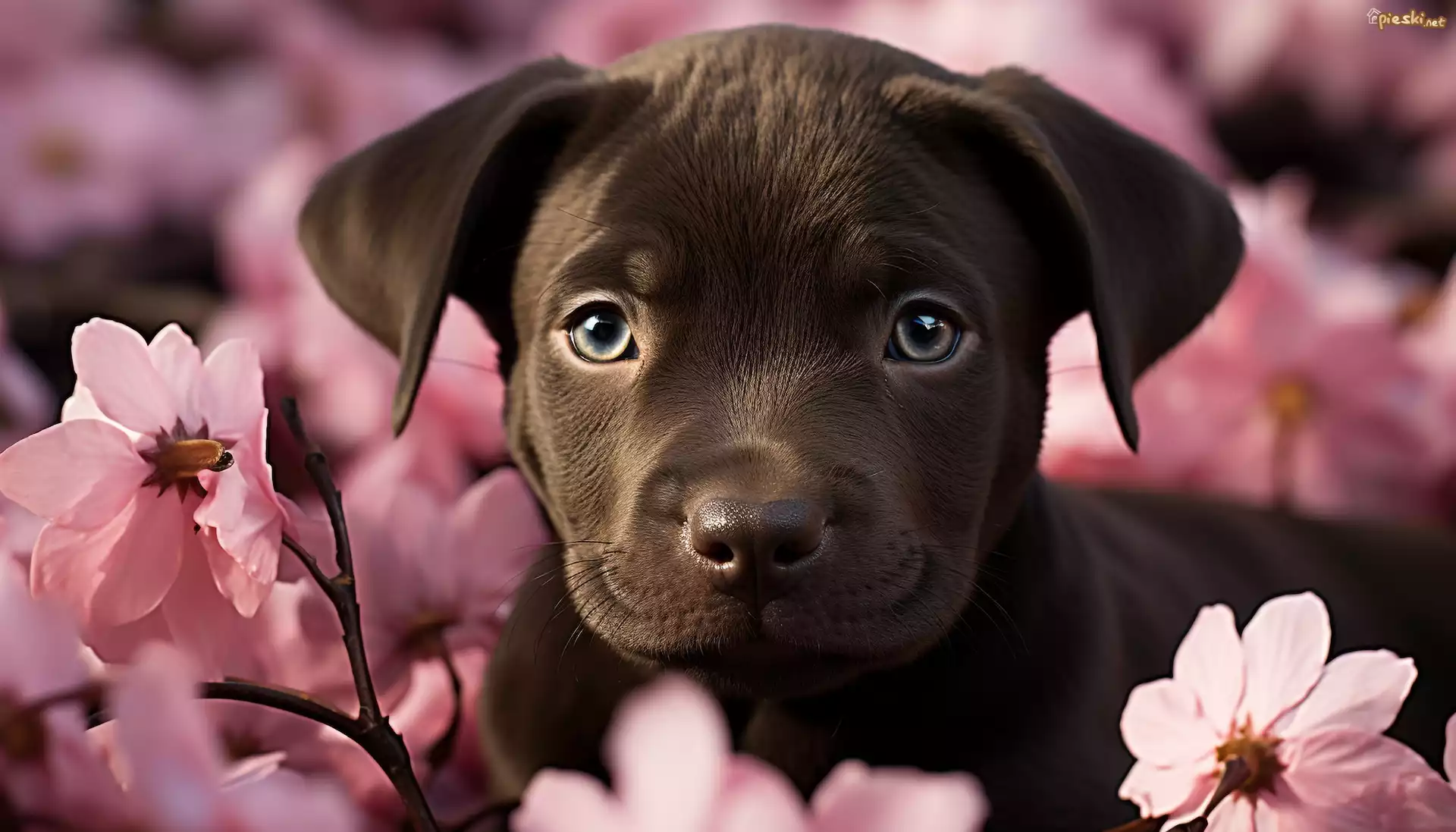 Pies Pies, Szczeniak, Kwiaty, Różowe