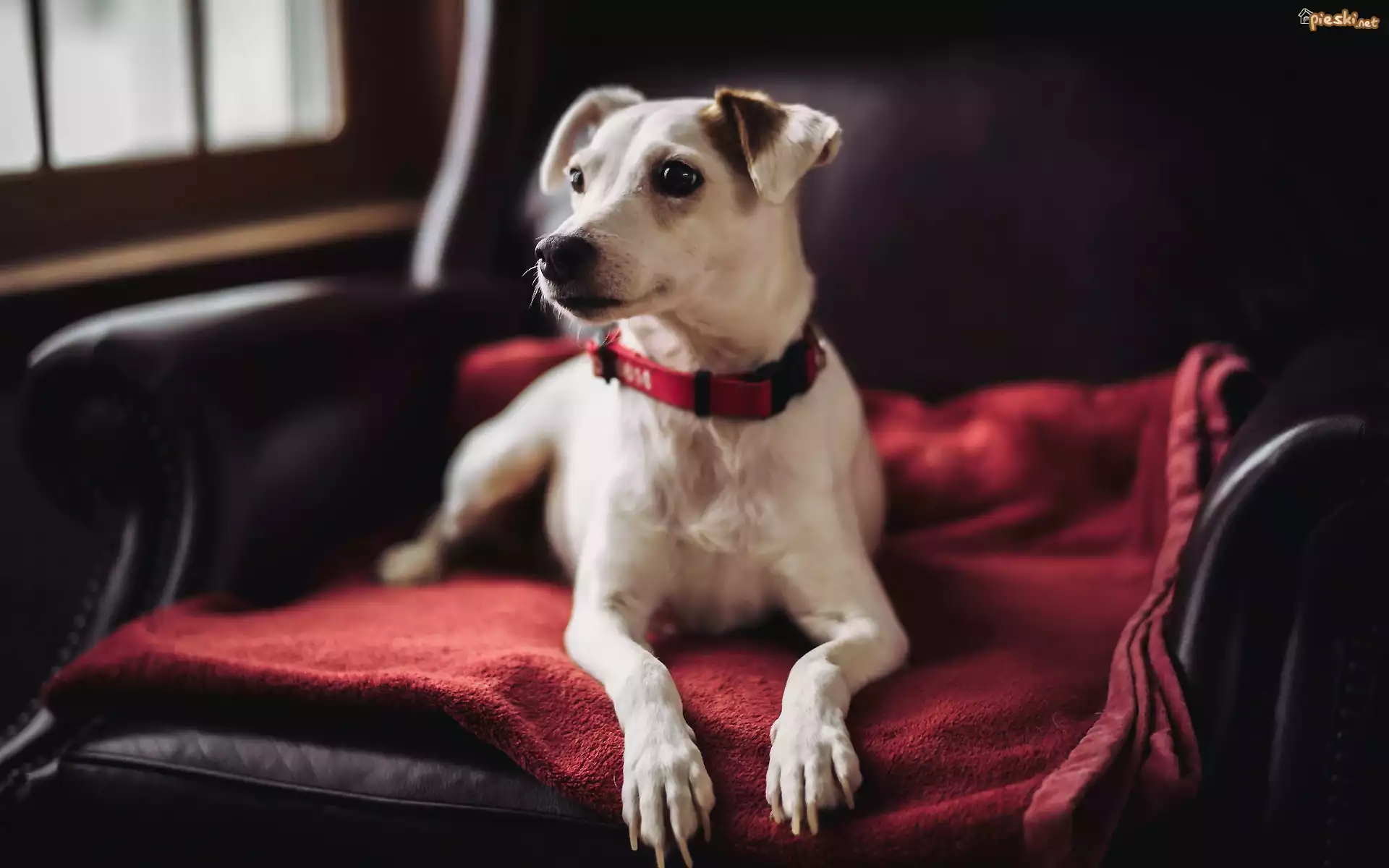 Pies Jack Russell Terrier, Pies, Fotel, Czerwona, Poduszka