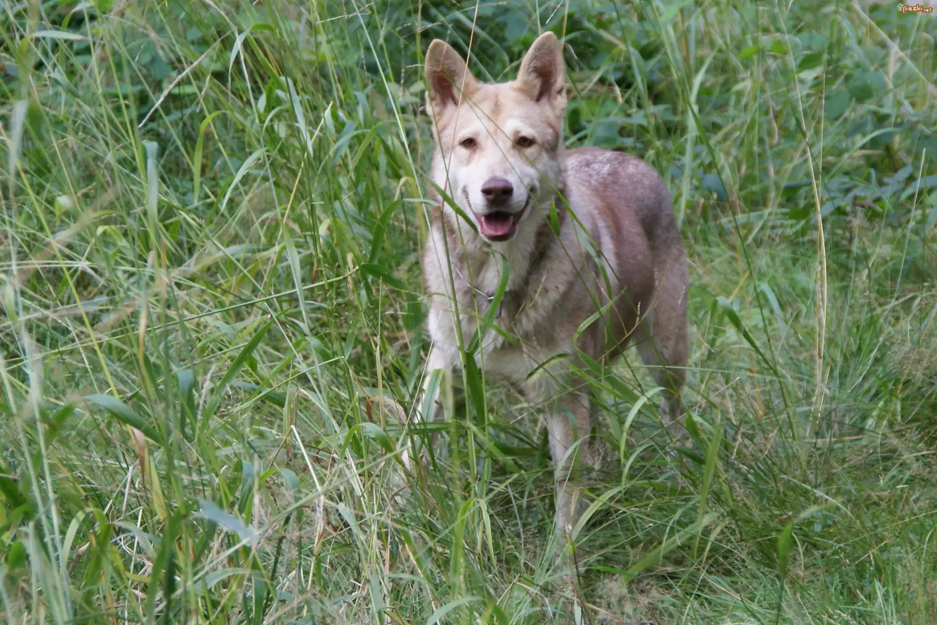 Pies Saarlooswolfhond, wysoka, zielona, trawa
