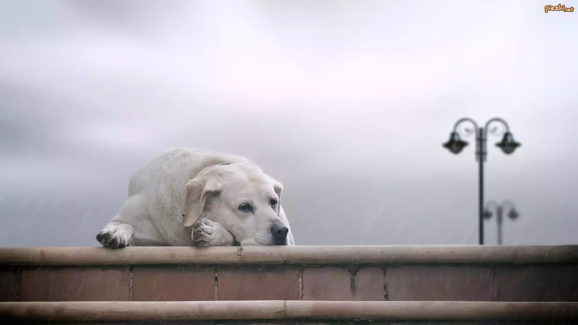 Pies Schody, Deszcz, Smutny, Pies, Labrador
