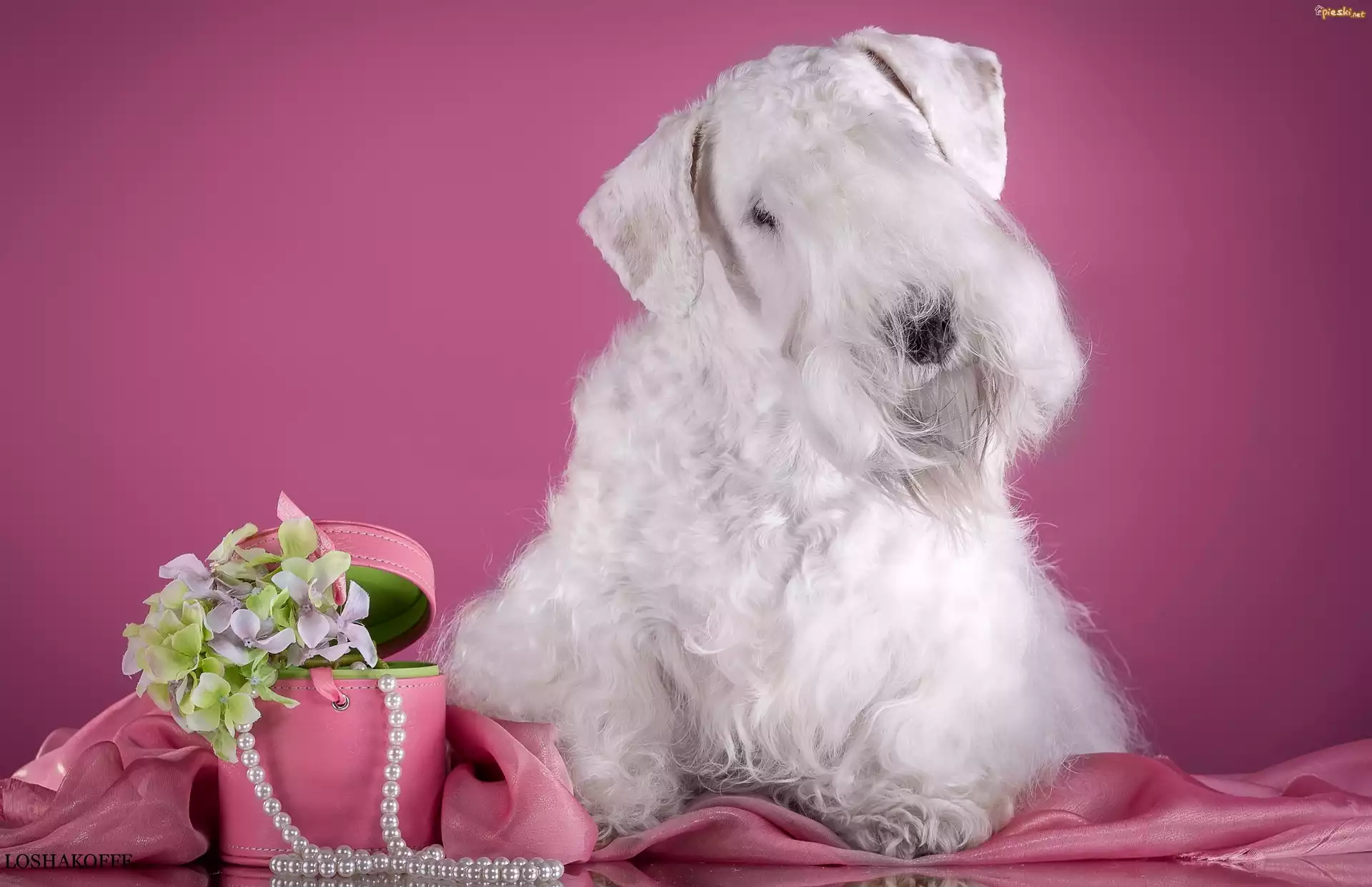 Pies Sealyham Terrier, Pudełko, Kwiatki, Perły