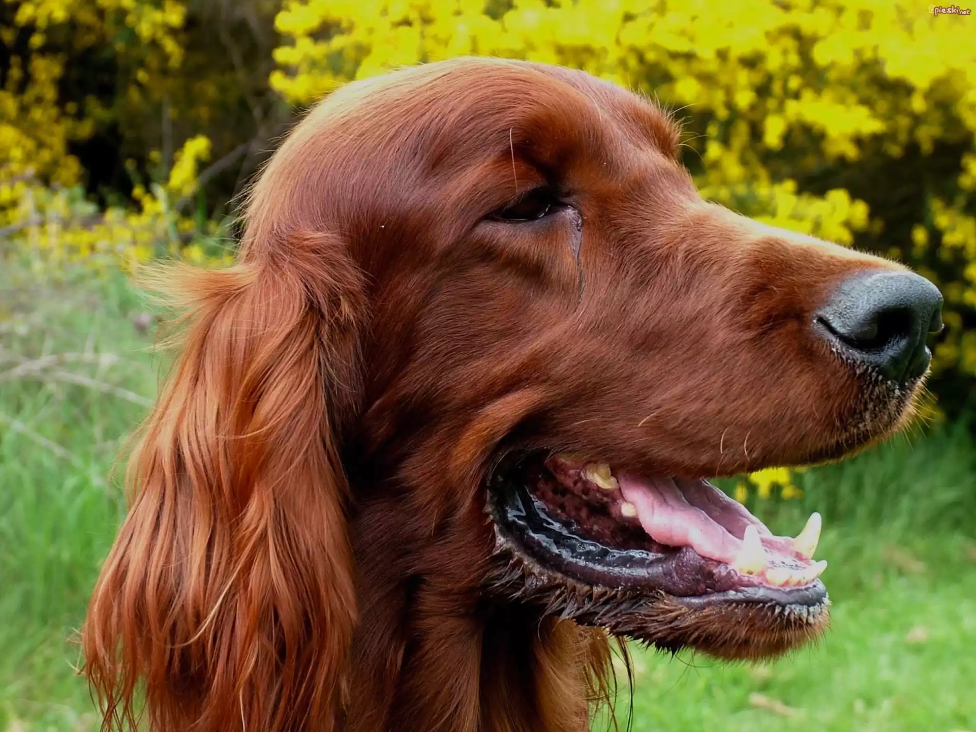 Pies Seter Irlandzki, Głowa, Pysk, Zieleń