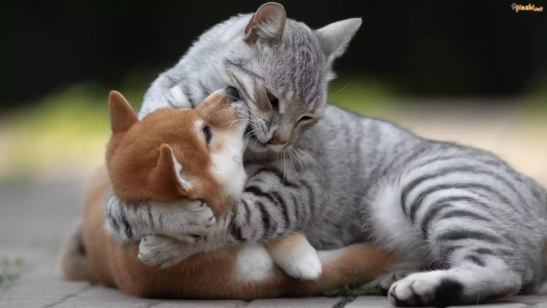 Pies Kot, Pies, Szczeniak, Shiba inu, Przyjaciele