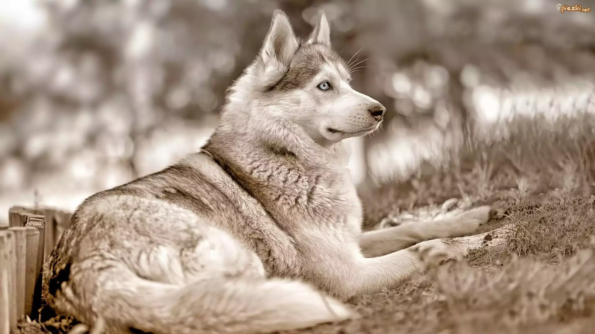 Pies Siberian, Husky, Czarno, Białe, Rozmycie