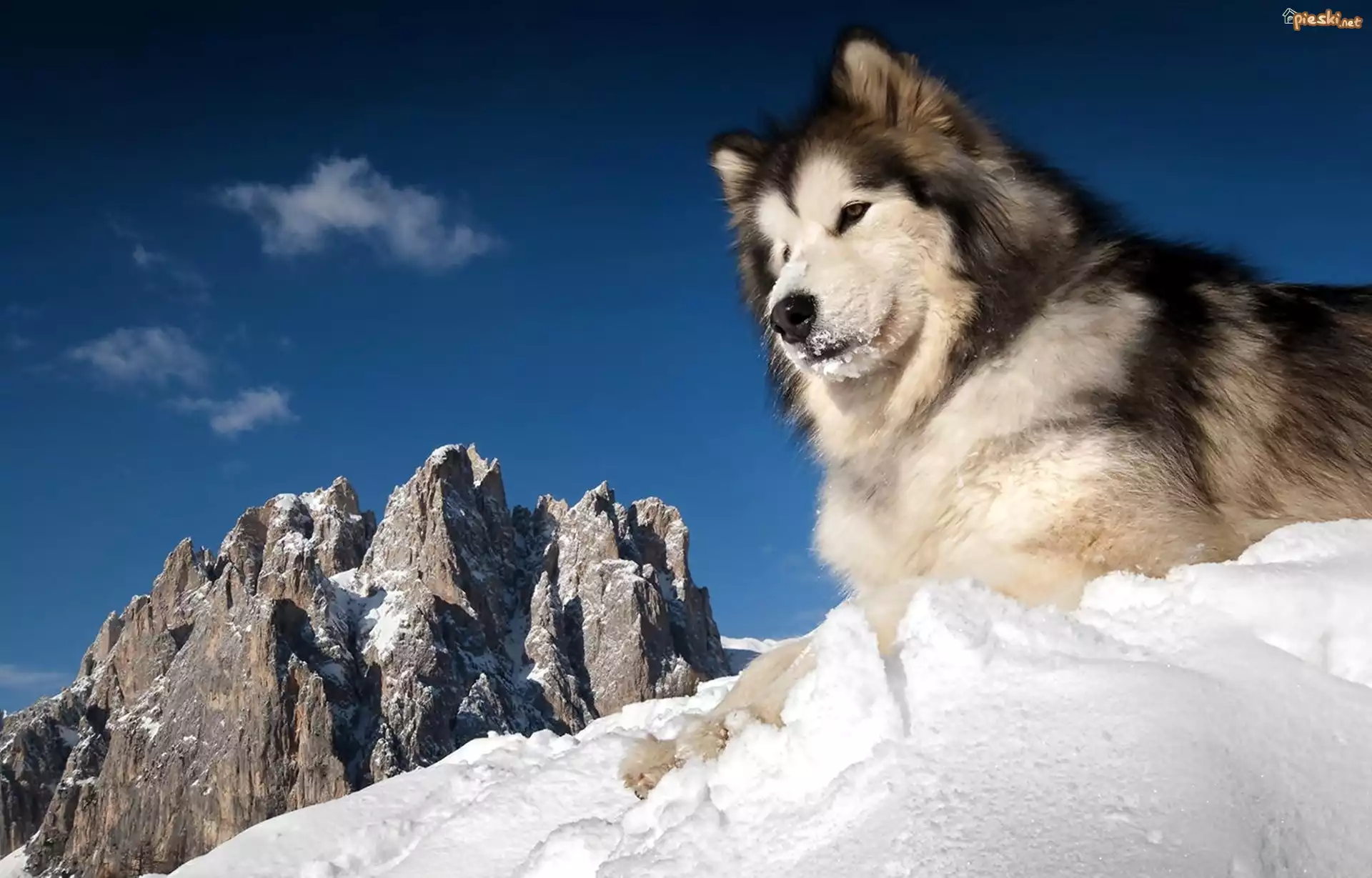 Pies Siberian, Husky, Zima, Góry, Śnieg