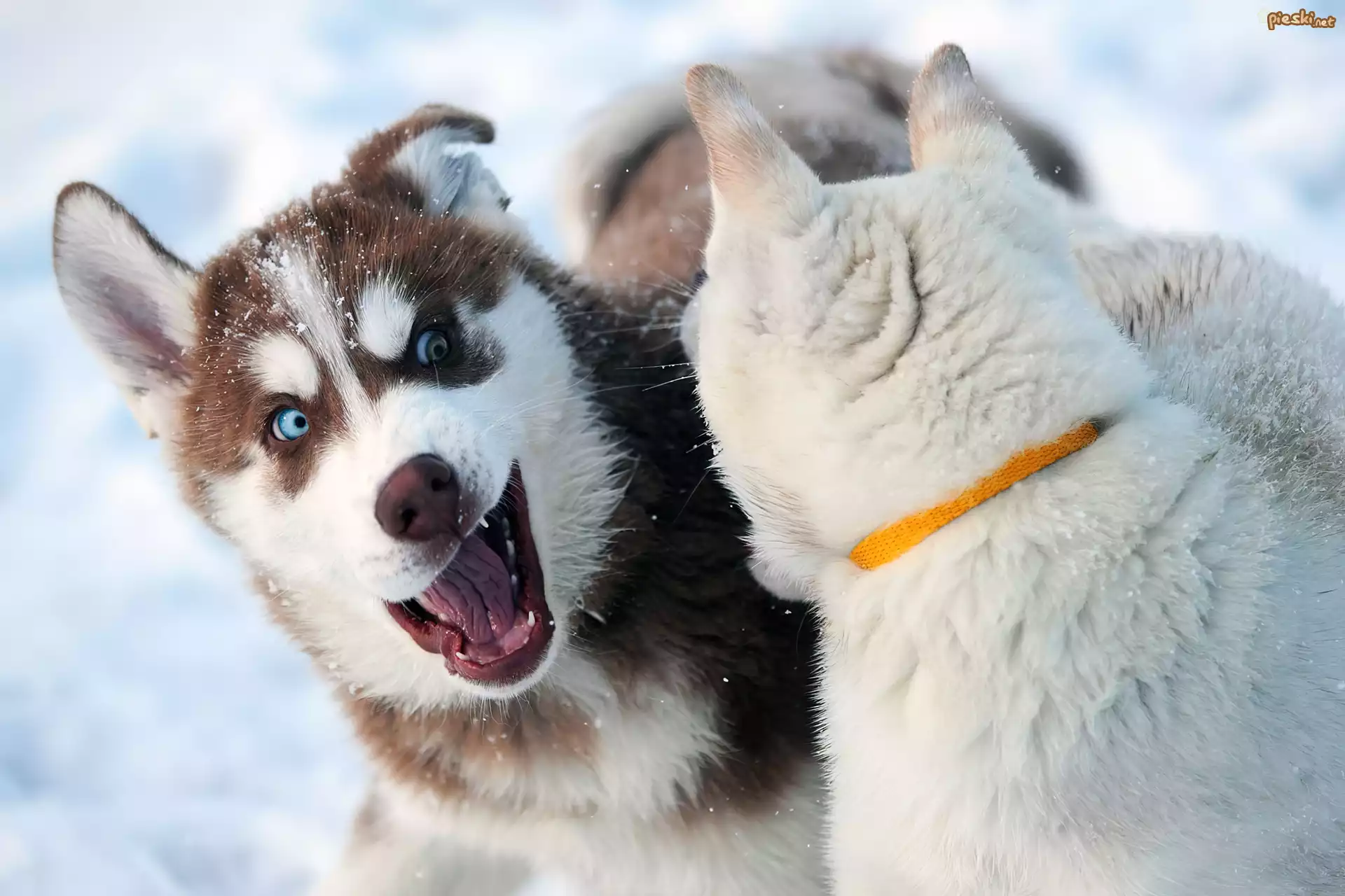 Siberian Husky, Zabawa, Na, Śniegu